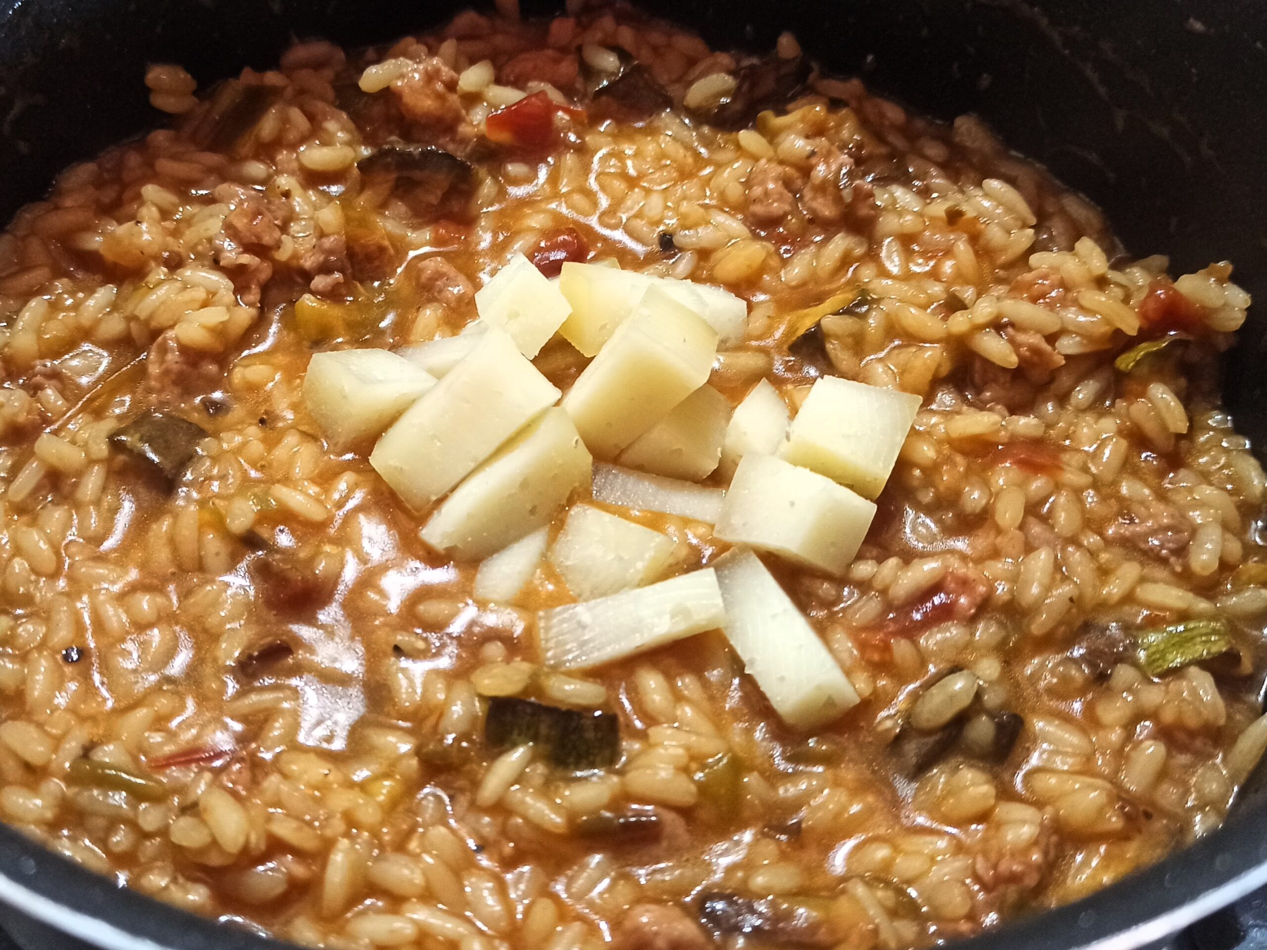 Il risotto alla donna Luisella, è un, primo piatto facile da realizzare. Cremoso e gustoso, preparato con ingredienti semplici, un equilibrato abbinamento di sapori, tra carne e verdura, il tutto amalgamato con del formaggio morbido e abbondante parmigiano, che donano cremosità al piatto. Le verdure sono le zucchine, i classici peperoncini di fiume e qualche pomodoro secco, mentre per la carne una semplice salsiccia. Ovviamente potete variare gli ingredienti, e per un risotto vegetariano non utilizzare la salsiccia, ma ovviamente preparerete un altro risotto, Ma adesso vediamo passo passo come preparare il risotto di donna Luisella.