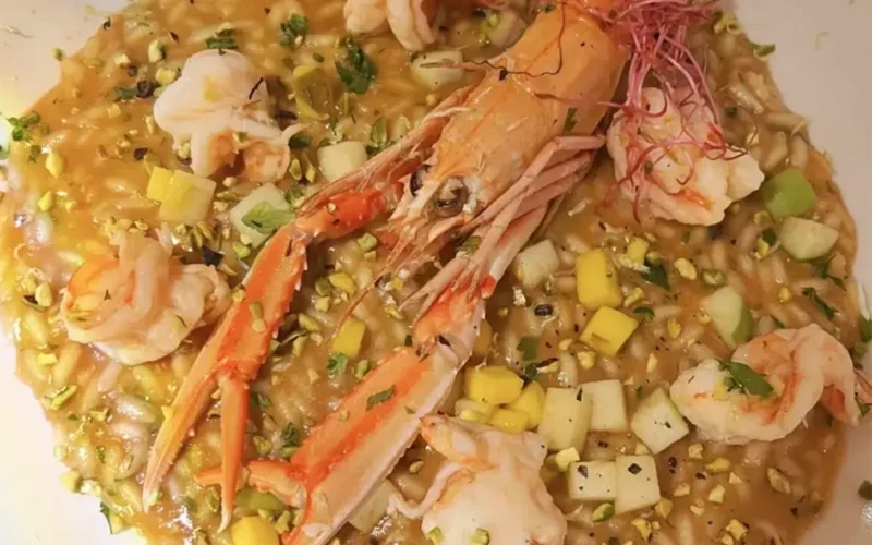 Impiattate il risotto e disponete sopra le code di scampi. Completate il piatto con i restanti pistacchi tritati e, se desiderate, una grattugiata di scorza di limone e una spolverata di prezzemolo fresco tritato. Per un sapore ancora più intenso, potete aggiungere un po’ di crema di pistacchio durante la mantecatura. Gli scampi possono essere sostituiti con gamberi o gamberoni, a seconda delle vostre preferenze.