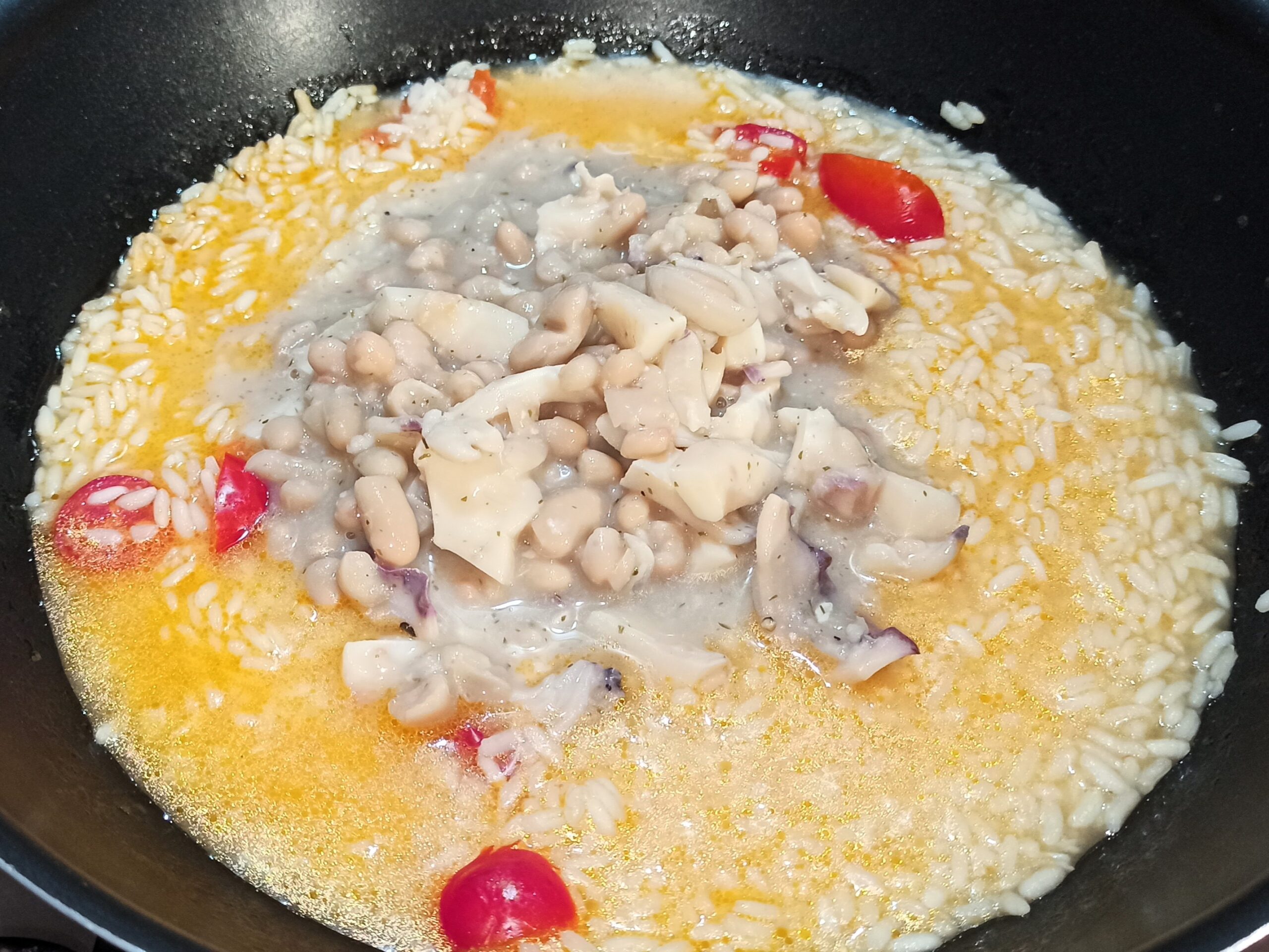 Il riso fagioli e seppie, è un primo piatto inconsueto. Un abbinamento unico di sapori, da preparare in qualsiasi periodo dell’anno, ed in ogni occasione. Potete preparare si ala versione in bianco, che utilizzando il nero contenuto nella vescichetta delle seppie. La ricetta che di seguito andremo a preparare è in bianco, in quanto alcuni ospiti non gradivano la versione con il nero, che vi proporremo in una ricetta successiva. Quindi per questa ricetta, non dovendo recuperare il nero, potete utilizzare sia le seppie fresche, che quelle congelate, ovviamente le fresche avranno tutto un altro sapore.