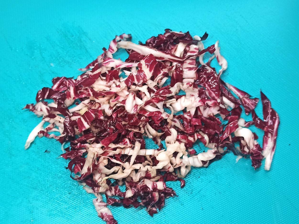 Pulite, lavate e tagliate a listarelle il radicchio.
