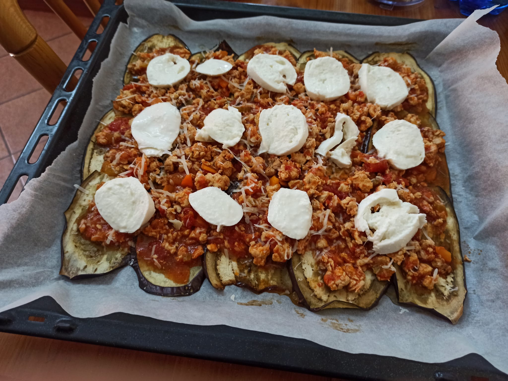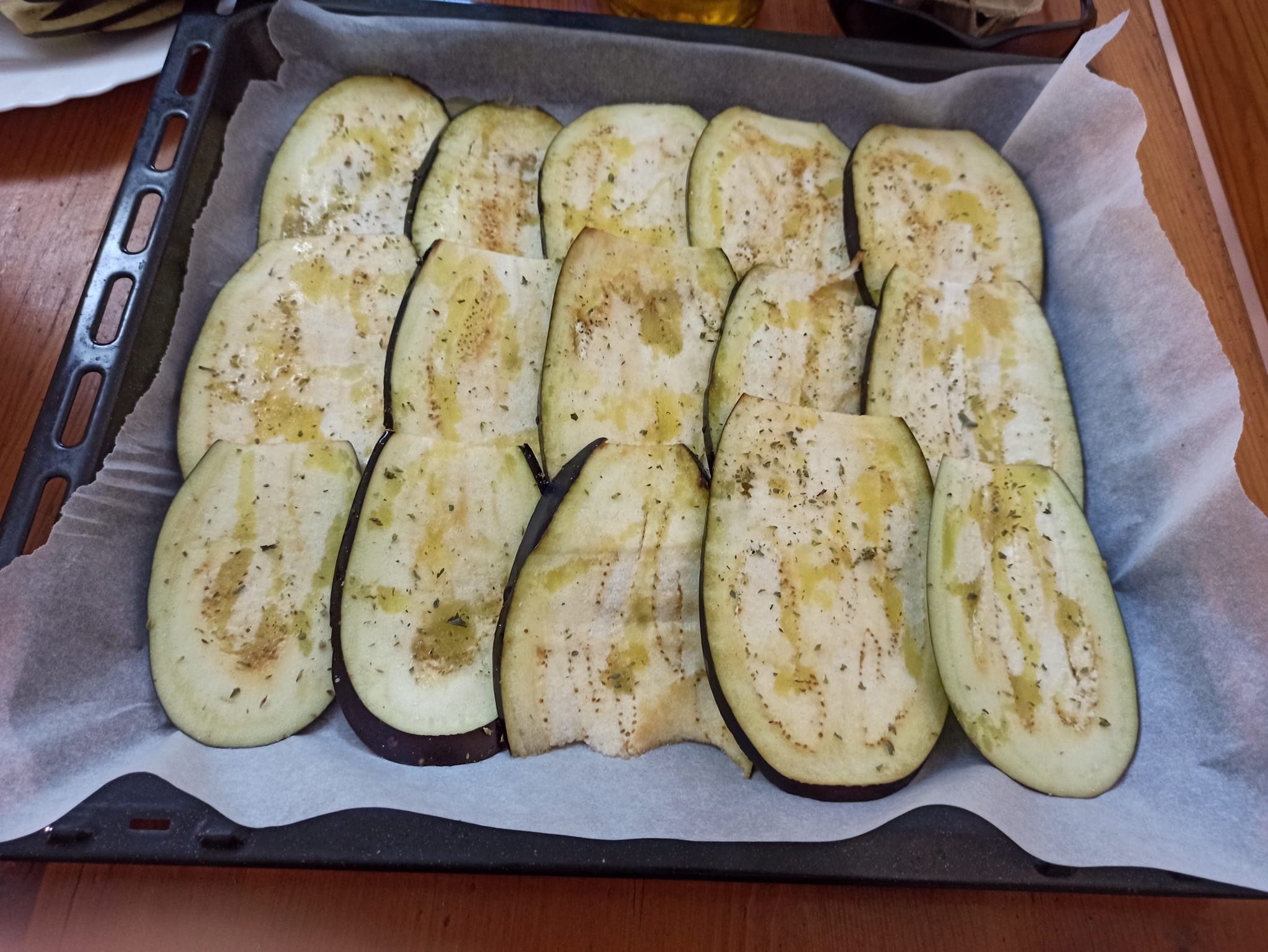 Iniziate a preparare il rotolo di melanzane al forno tagliando le melanzane a fette sottili per il lungo e friggetele in olio ben caldo. Una volta dorate, adagiatele su carta assorbente per eliminare l’olio in eccesso e lasciatele raffreddare. Su un piano di lavoro, stendete un foglio di carta forno e disponete le fette di melanzane sovrapponendole leggermente per formare un rettangolo. Cospargete con il parmigiano grattugiato e aggiungete le fette di provola, coprendo uniformemente le melanzane. Distribuite i pomodori tagliati a fettine e conditi con un filo d’olio, sopra il formaggio. Aggiungete le fette di prosciutto cotto come ultimo strato.