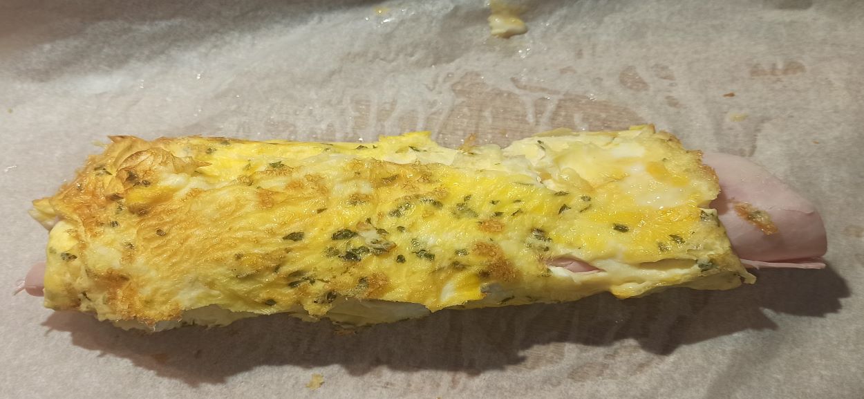 Cuocete a 200° per cinque minuti. Il vostro rotolo frittata del goloso, è pronto per essere servito e gustato.