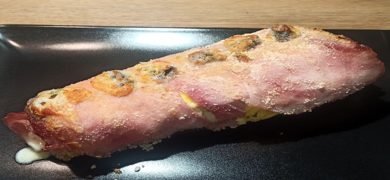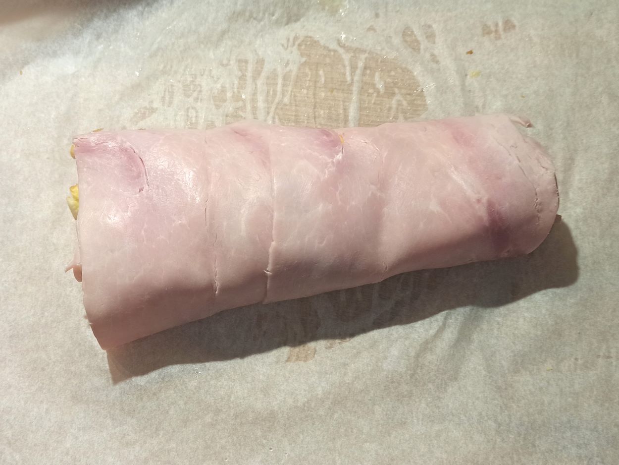poi avvolgetela con le restati fette di prosciutto cotto.