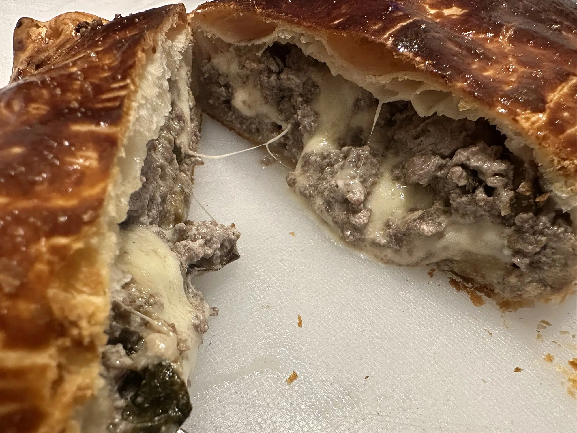 Stendere il rotolo di pasta sfoglia su un piano di lavoro. Distribuire la salsiccia cotta al centro, lasciando un po’ di spazio sui bordi. Aggiungere la scamorza a cubetti e una spolverata di parmigiano grattugiato. Se gradito, aggiungere una macinata di pepe nero per esaltare il sapore.