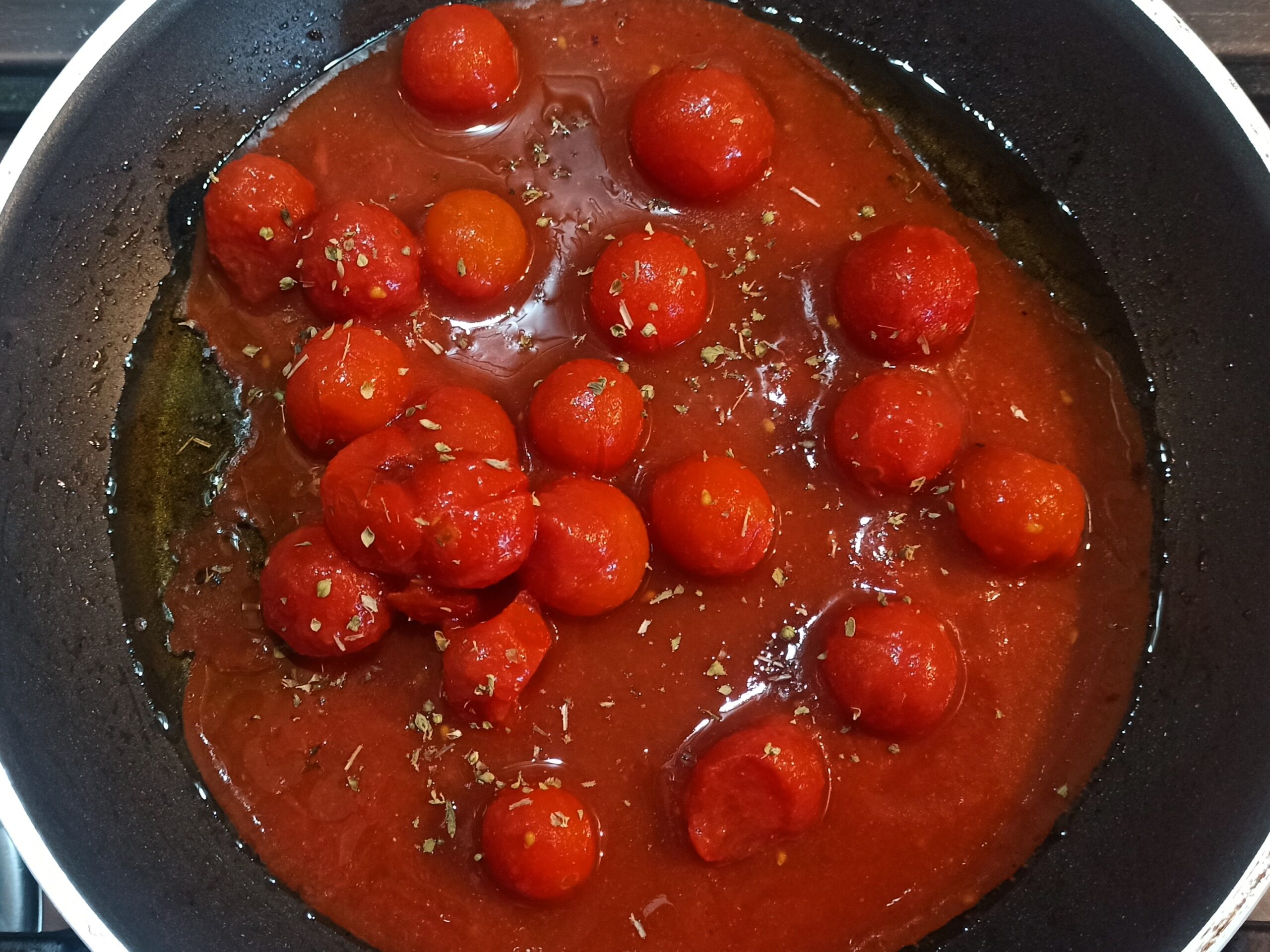 Aggiungete i pomodorini, regolate di sale e fate cuocere per cinque minuti a fiamma media.