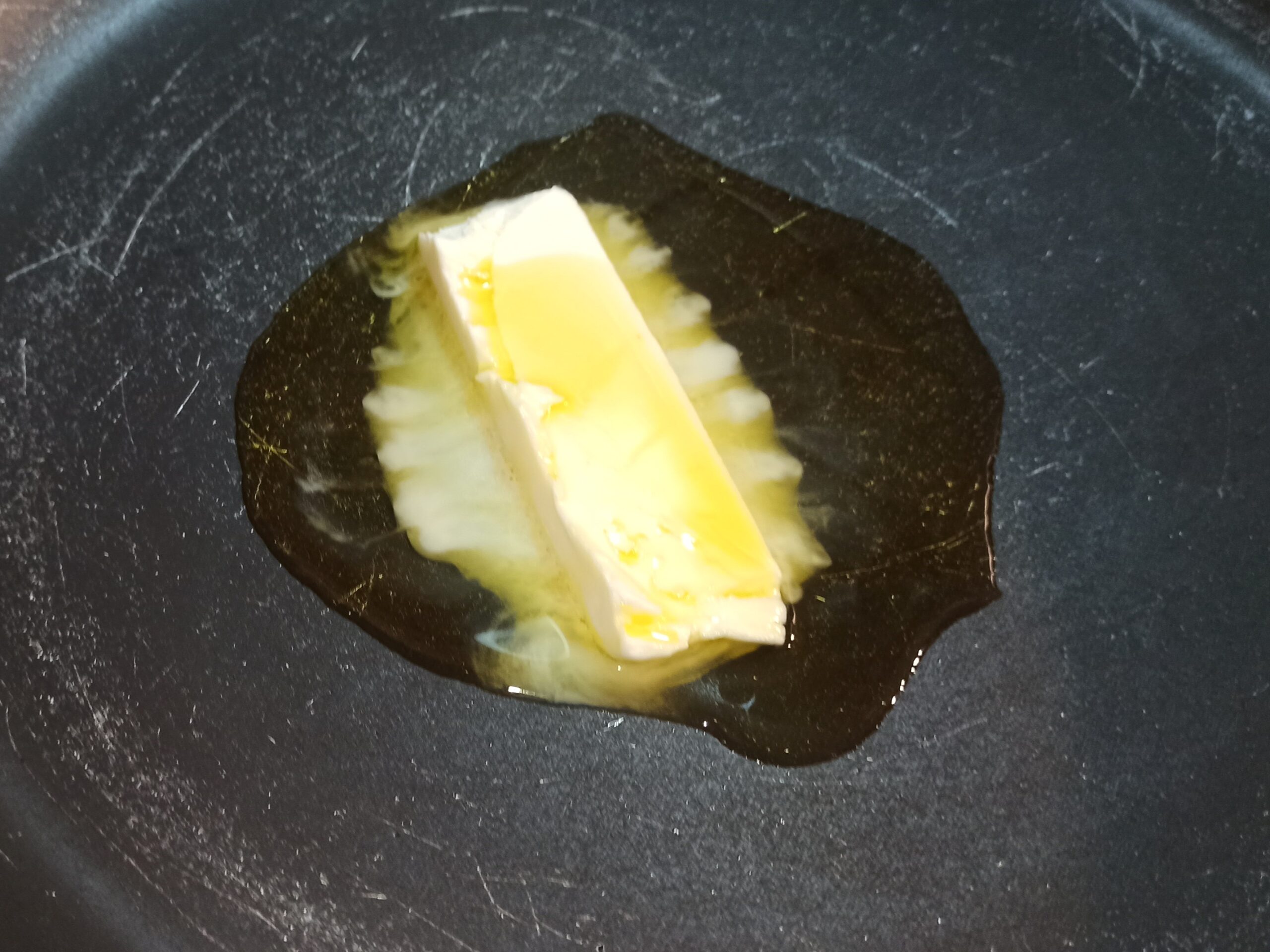 In una capiente padella, mettete l’olio evo, il burro, fate sciogliere a temperatura bassa.