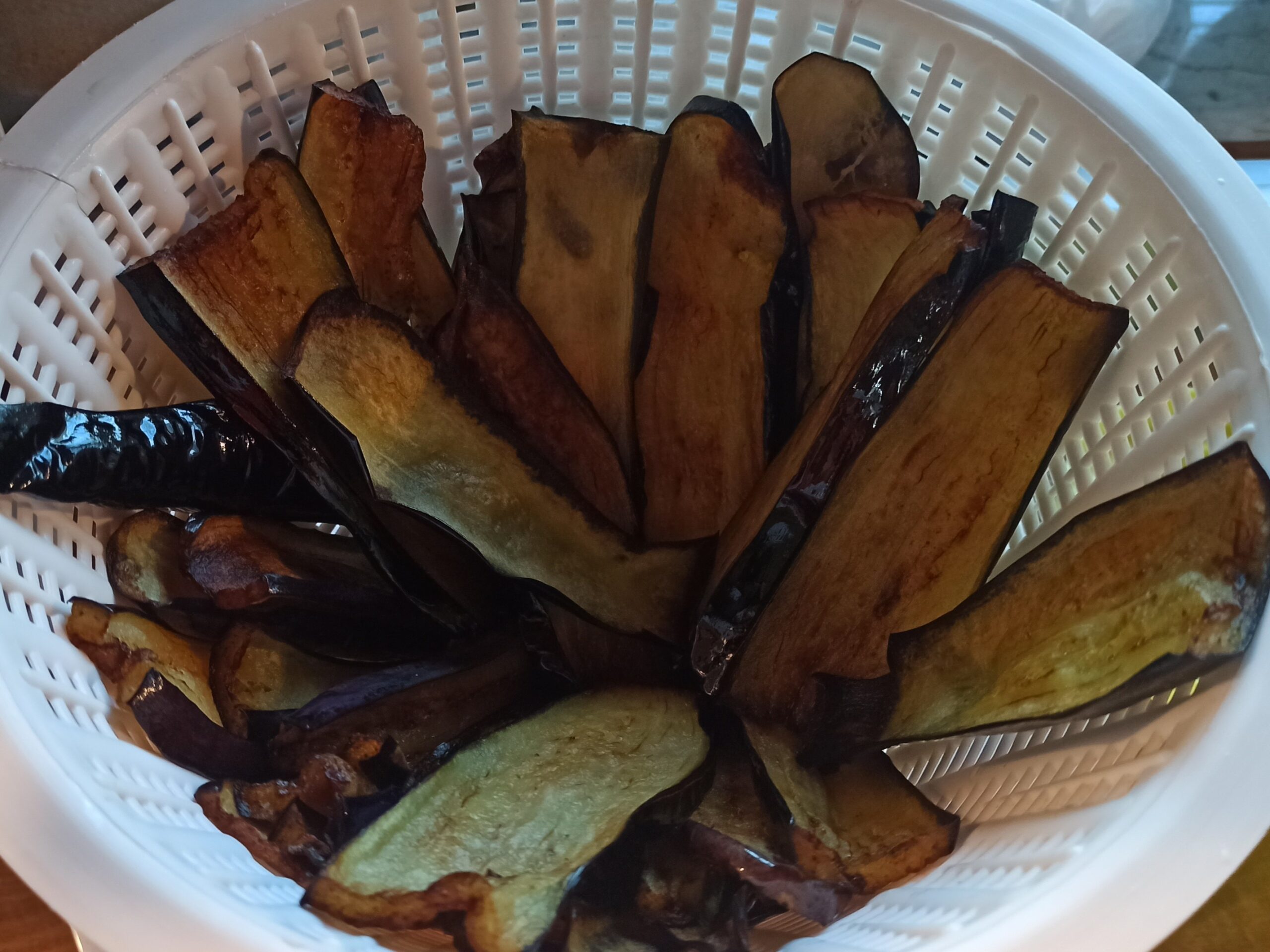 Mano a mano che sono pronte, sistematele in una colapasta, e/o similare, in modo da eliminare tutto l’olio in eccesso. Fatele colare per almeno cinque ore, se avete tempo, potete friggerle la sera, in modo da farle colare tutta la notte.