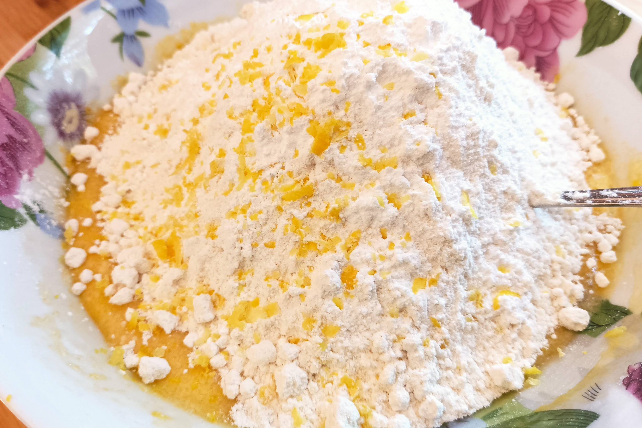 Nel frattempo preparate la pasta frolla: in una ciotola unite il burro con lo zucchero, aggiungete i tuorli e l’uovo, e mescolate brevemente; aggiungete la farina mischiata con il lievito, un pizzico di sale e la buccia grattugiata del limone; Impastate velocemente fino ad ottenere un impasto liscio ed omogeneo; formate un panetto, copritelo con la la pellicola da cucina e fate riposare in frigorifero per mezzora.