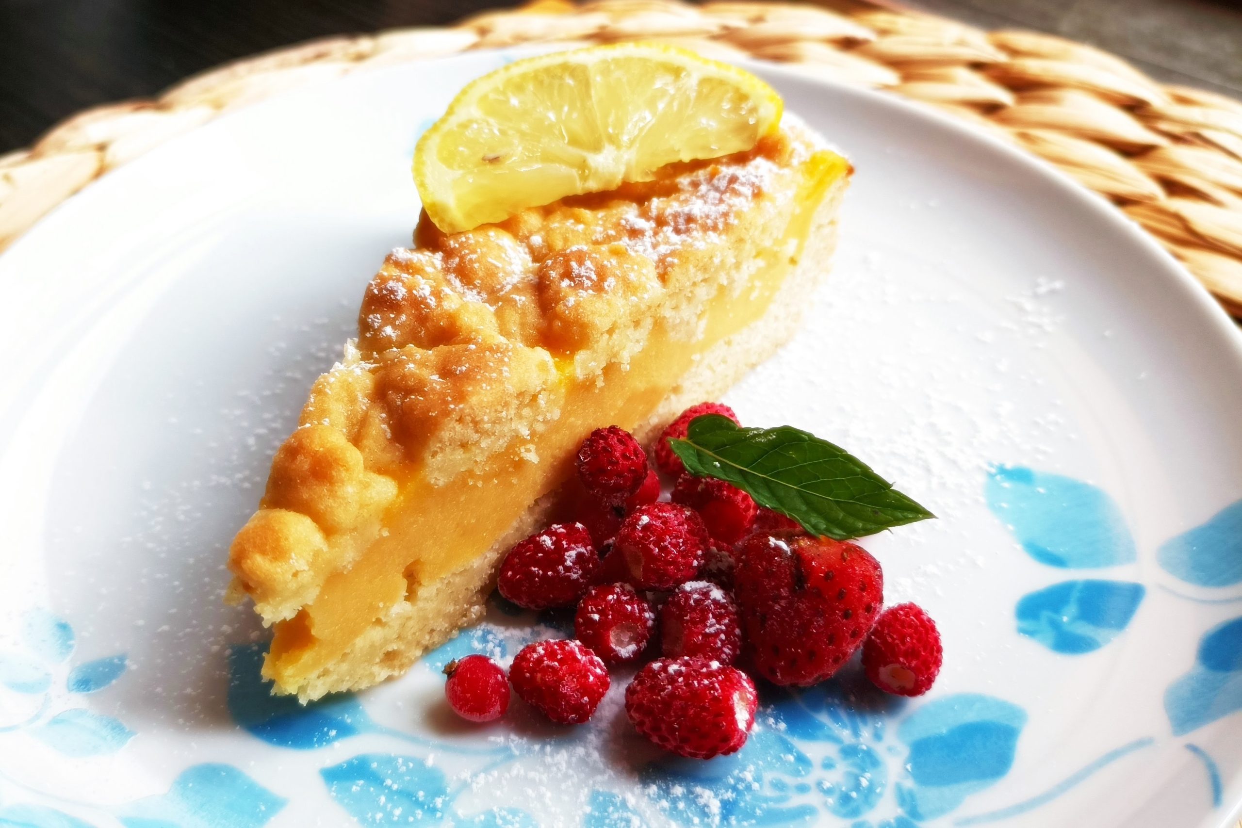 la pasta frolla è soffice e profumata, realizzata necessariamente con il burro e con il lievito; la crema al limone consiste in una crema pasticcera aromatizzata con scorza di di limone. Insomma, una di quelle torte che mentre cuociono sprigionano in tutta la cucina un profumo delizioso di limone!