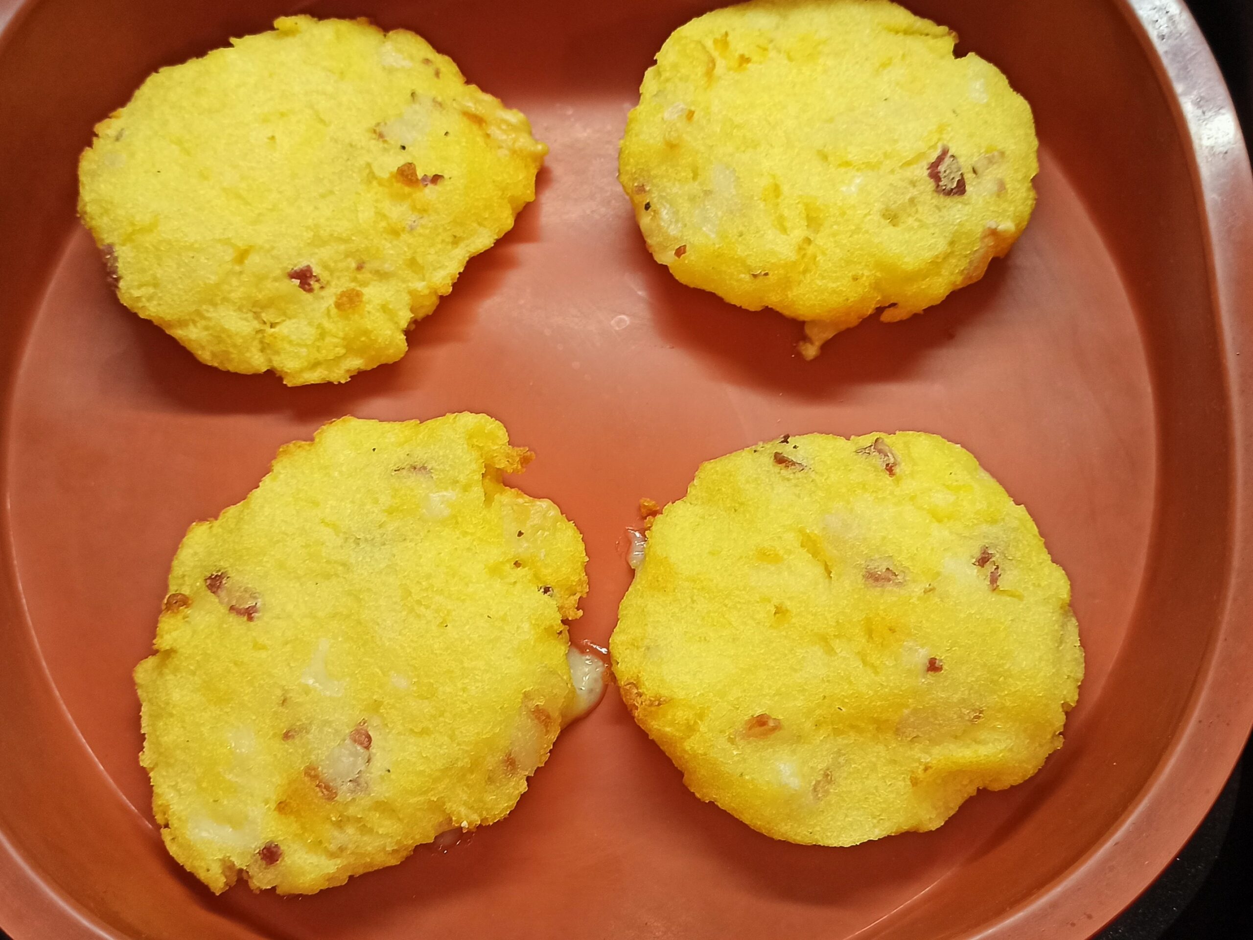 Gli scagliuzzielli, sono dei pezzetti di polenta fritti. Oggi si trovano facilmente in tutte le friggitorie, insieme alle zeppole e panzarotti, fanno parte del classico fritto napoletano. Generalmente vengono preparati al naturale, senza aggiungere altro, facili da preparare. Di seguito vi lascio la ricetta di nonna Assunta, che preparava gli scagliuzzielli, con l’aggiunta di salumi e formaggi, e un pizzico di pepe. Anche la forma era diversa, invece della classica forma triangolare, gli dava una forma tondeggiante.
