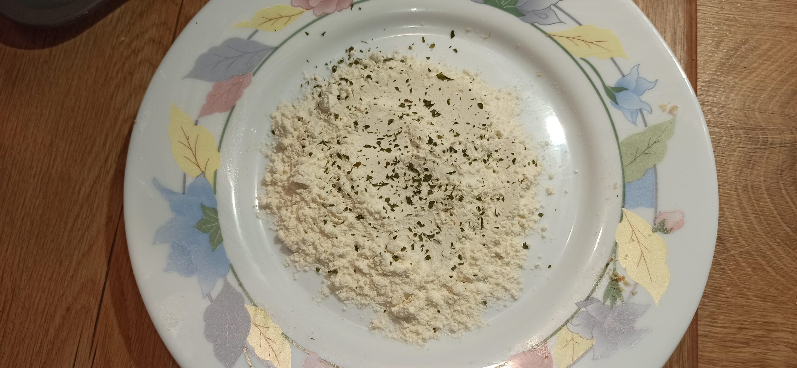 Per preparare i filetti di orata al limone, mettete la farina in un piatto, aggiungete il sale, il prezzemolo tritato e mescolate.