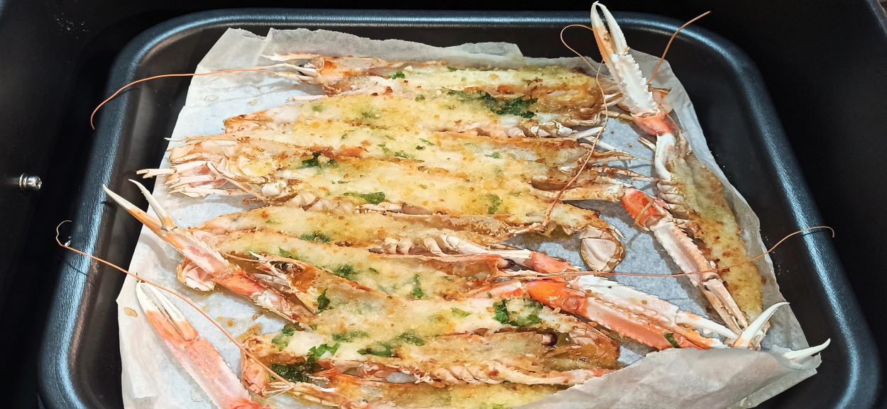 Infornate in forno preriscaldato a 200° per dieci minuti, io ho effettuato la cottura in friggitrice ad aria. Appena saranno dorati, i vostri scampi gratinati sono pronti per essere gustati.
