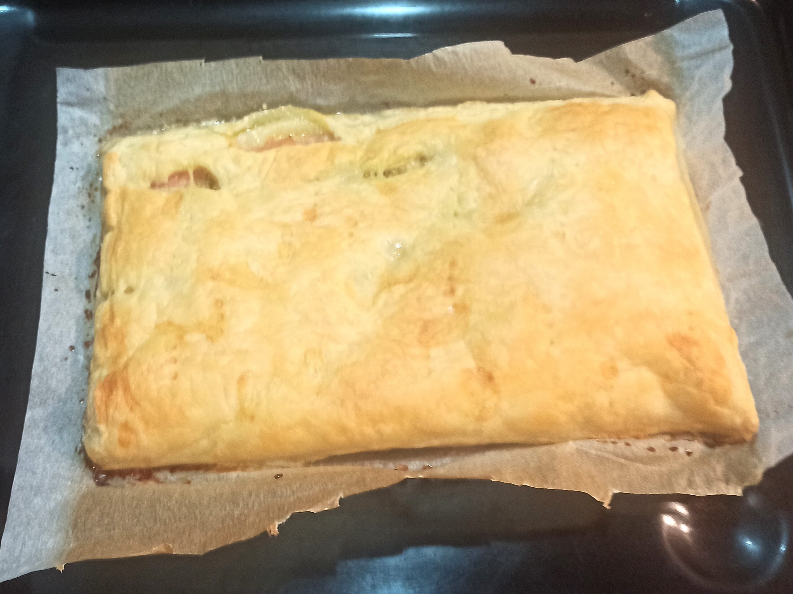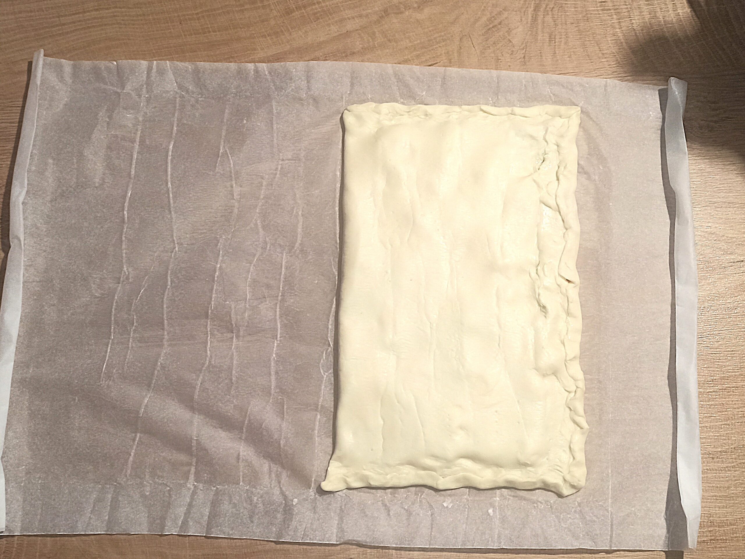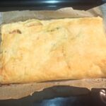 Ripiegate la pasta sfoglia, e sigillate i bordi. Bucherellate la superfice, e cuocete la focaccia in forno statico preriscaldato a 180° per circa venti minuti.