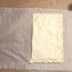 Stendete il rotolo di pasta sfoglia sul piano di lavoro. Schiacciatelo delicatamente, in modo che in fase di cottura non si gonfierà molto.