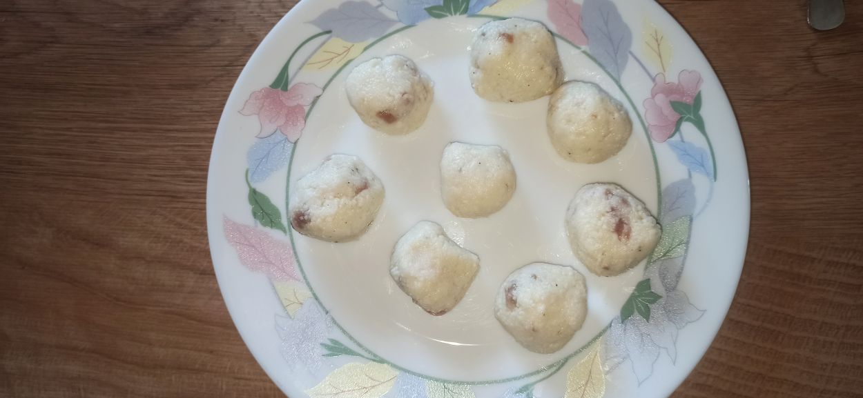 Con l’aiuto di un cucchiaino, prelevate delle piccole quantità di impasto e formate delle sfere. Mano a mano che formate le sfere, posizionatele su un piatto.