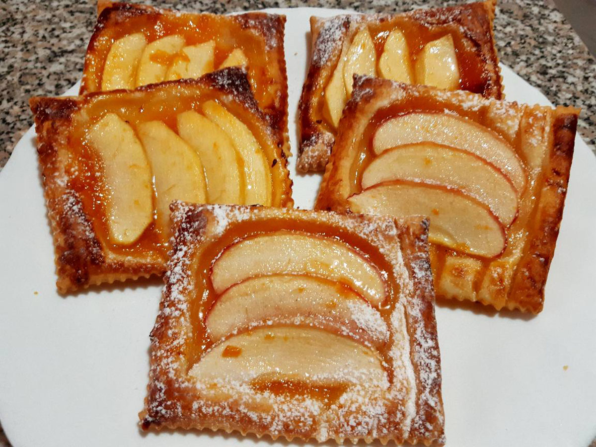 Le sfogliatine alle mele sono dei dolcetti squisiti, monoporzione, che si realizzano in pochi minuti. Perfetti quando i figli vi chiamano e vi dicono che stanno arrivando a casa con degli amici per studiare insieme. Oppure quando un’amica vi viene a trovare e volete sorprenderla con qualcosa preparato con le vostre mani. La loro particolarità è che si preparano al contrario, partendo dalla superficie sino ad arrivare alla base. Per questa preparazione vi consigliamo delle mele piccole e croccanti. Una volta pronte, potete conservarle sotto una campana di vetro anche per 4 giorni.
