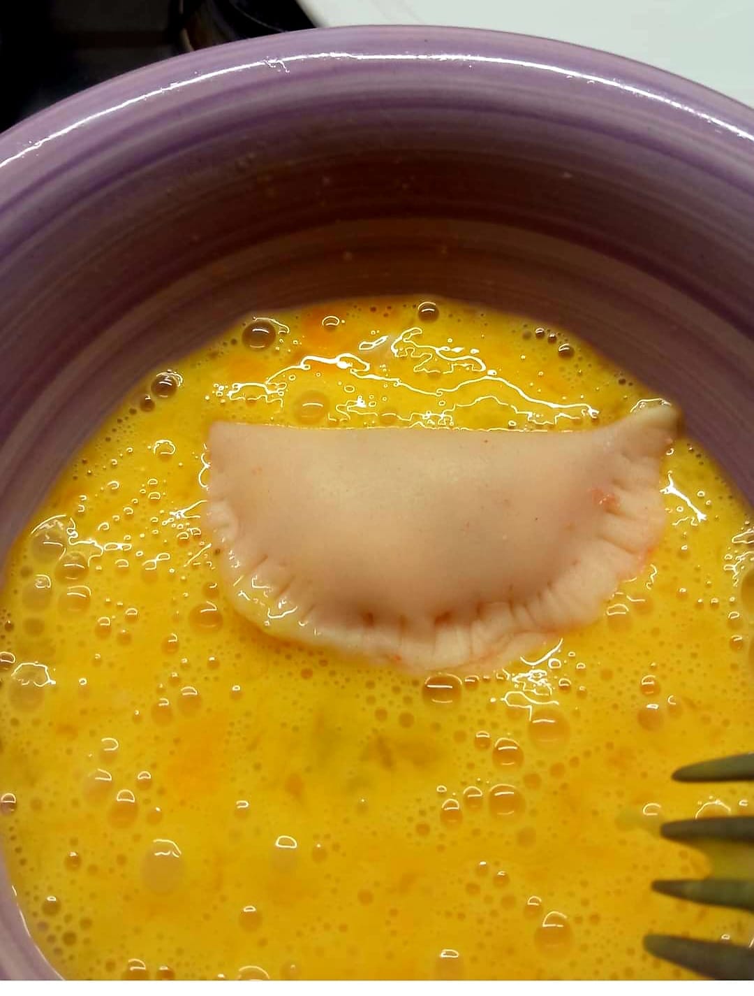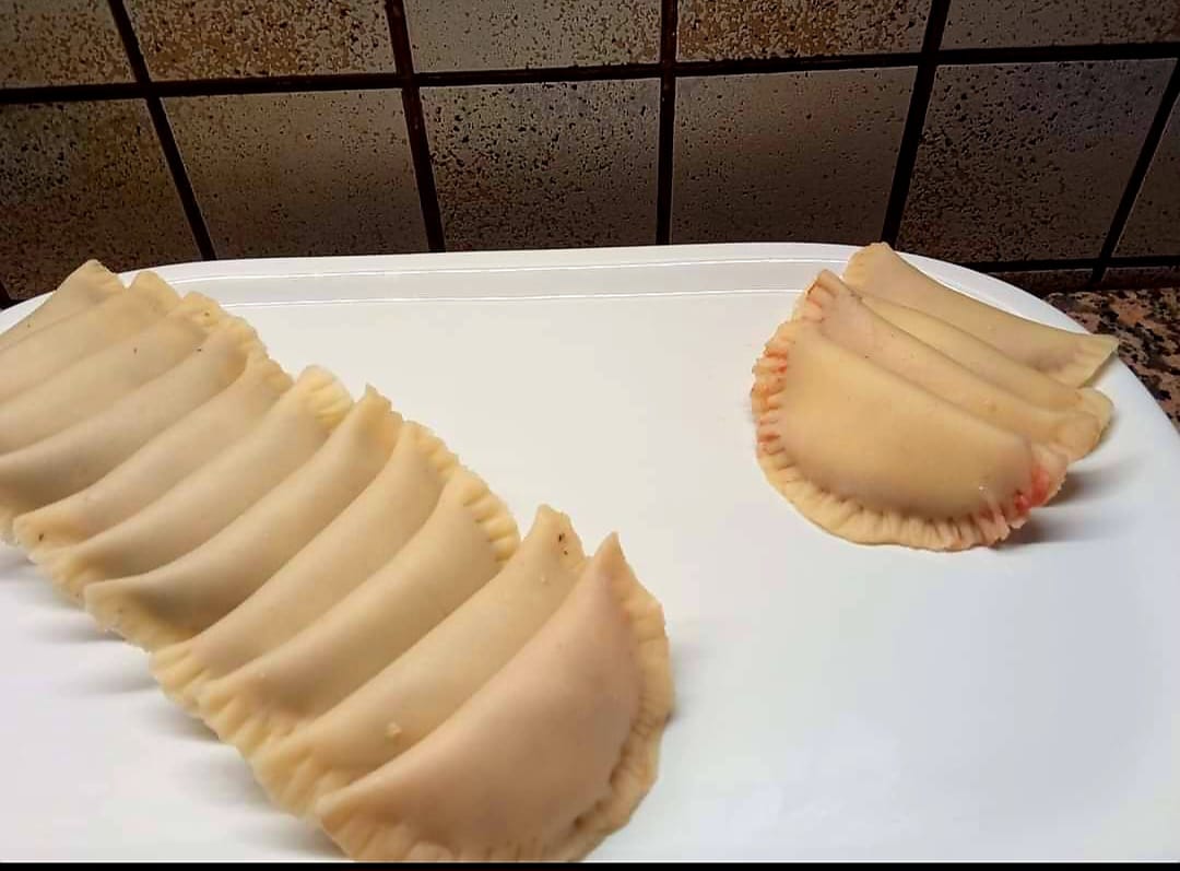 Avvolgerlo con la pellicola e lasciarlo riposare una decina di minuti nel frattempo prepareremo i ripieni tra cui una besciamella densa.Trascorso il tempo stenderemo il panetto con il mattarello formando una sfoglia di 1 cm di spessore.Con un taglia pasta od una tazza formiamo dei dischetti che assottigliremo ancora un po uno alla volta per renderli ancora più sottili per poi riempirli a piacere e chiuderli su se stessi dandogli la forma classica a mezza luna sigillando bene i bordi prima con le dita poi con una forchetta.