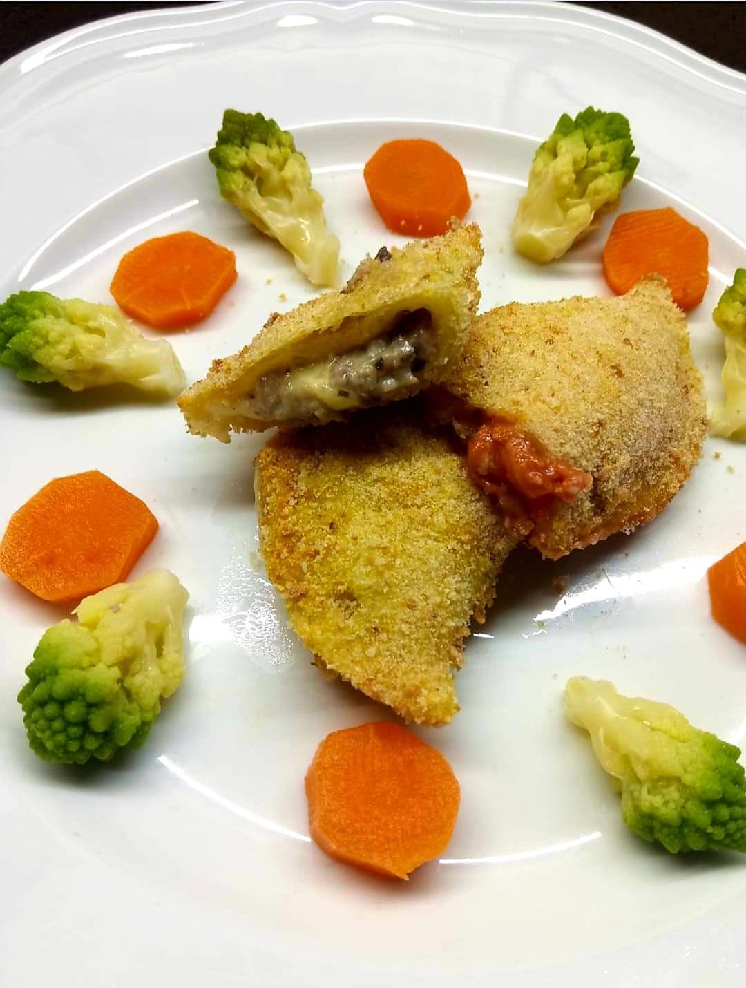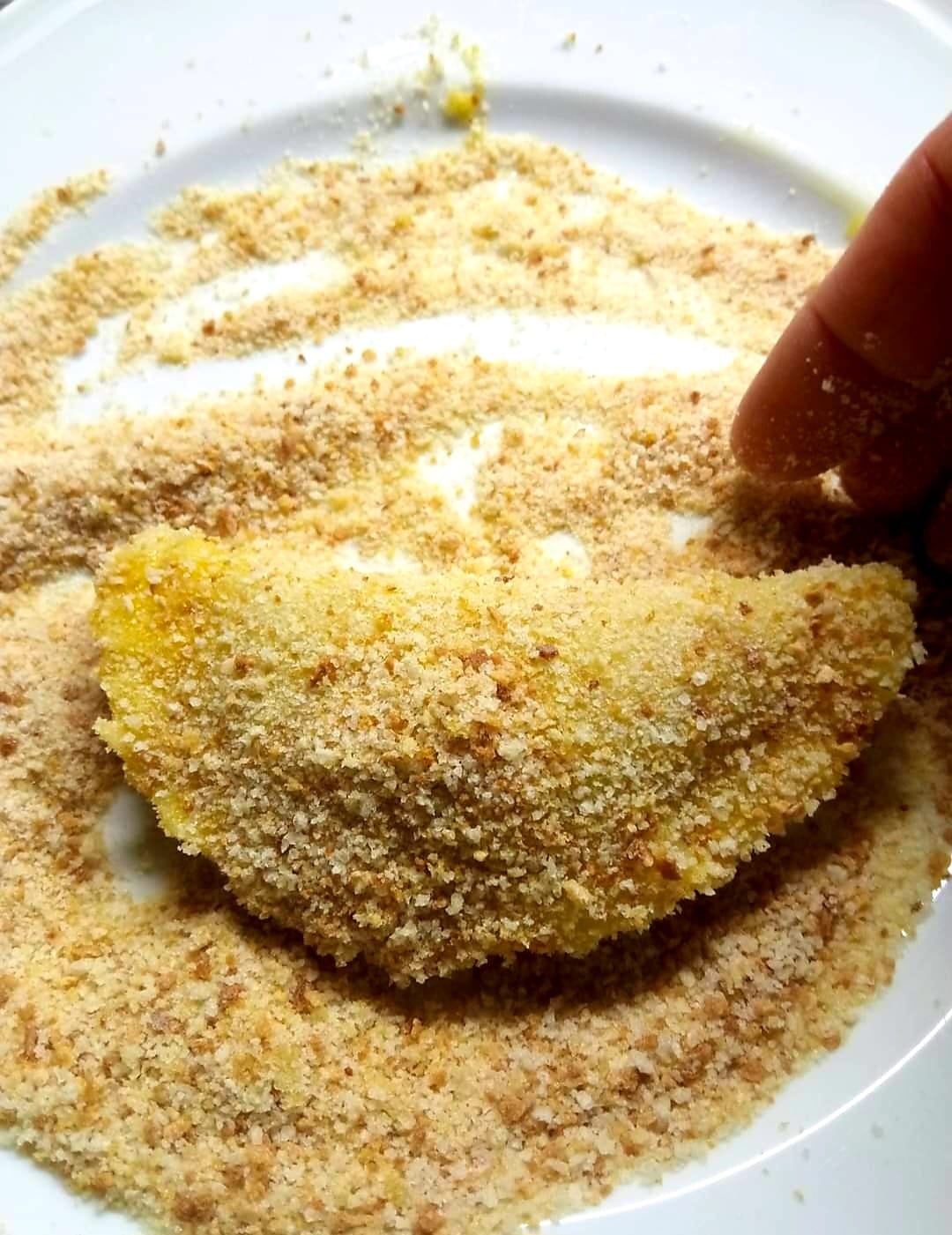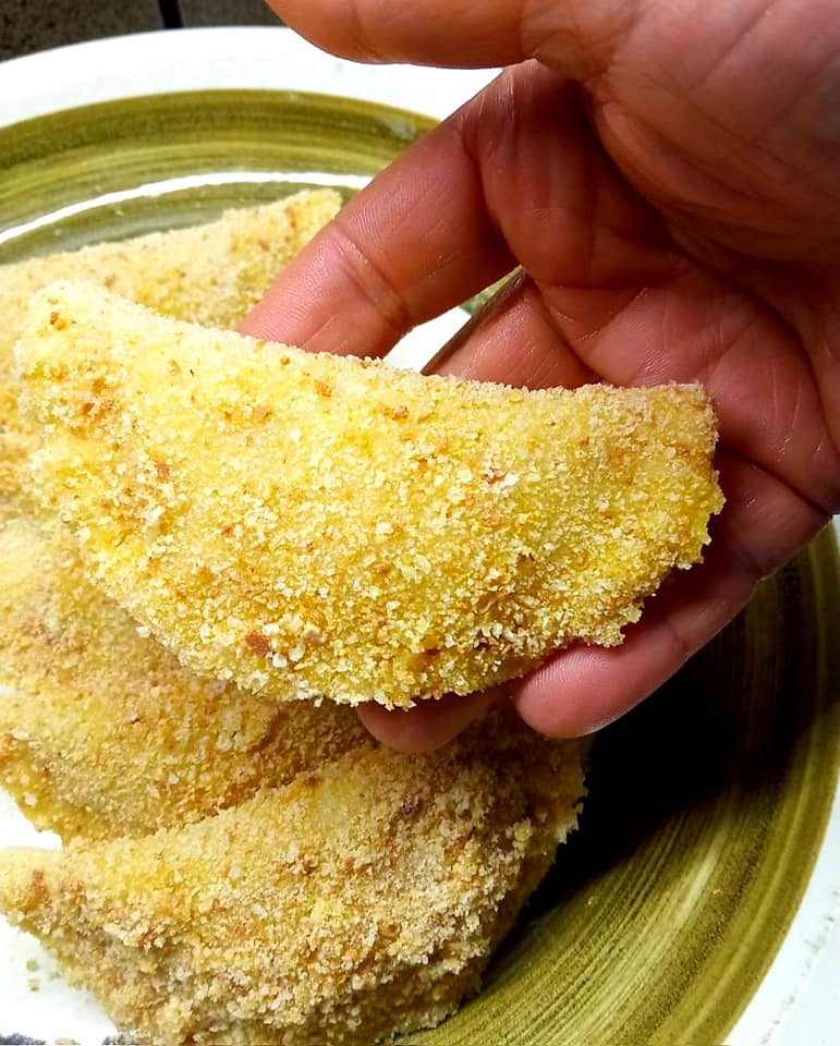 A questo punto li passeremo prima nell’ uovo battuto con un pizzico di sale e poi nel pangrattato. Si possono sia friggere in olio di semi oppure al forno 180 x 20 minuti con un filino di olio avendo l’ accortezza a metà cottura di girarli. Buon lavoro a voi tutti
