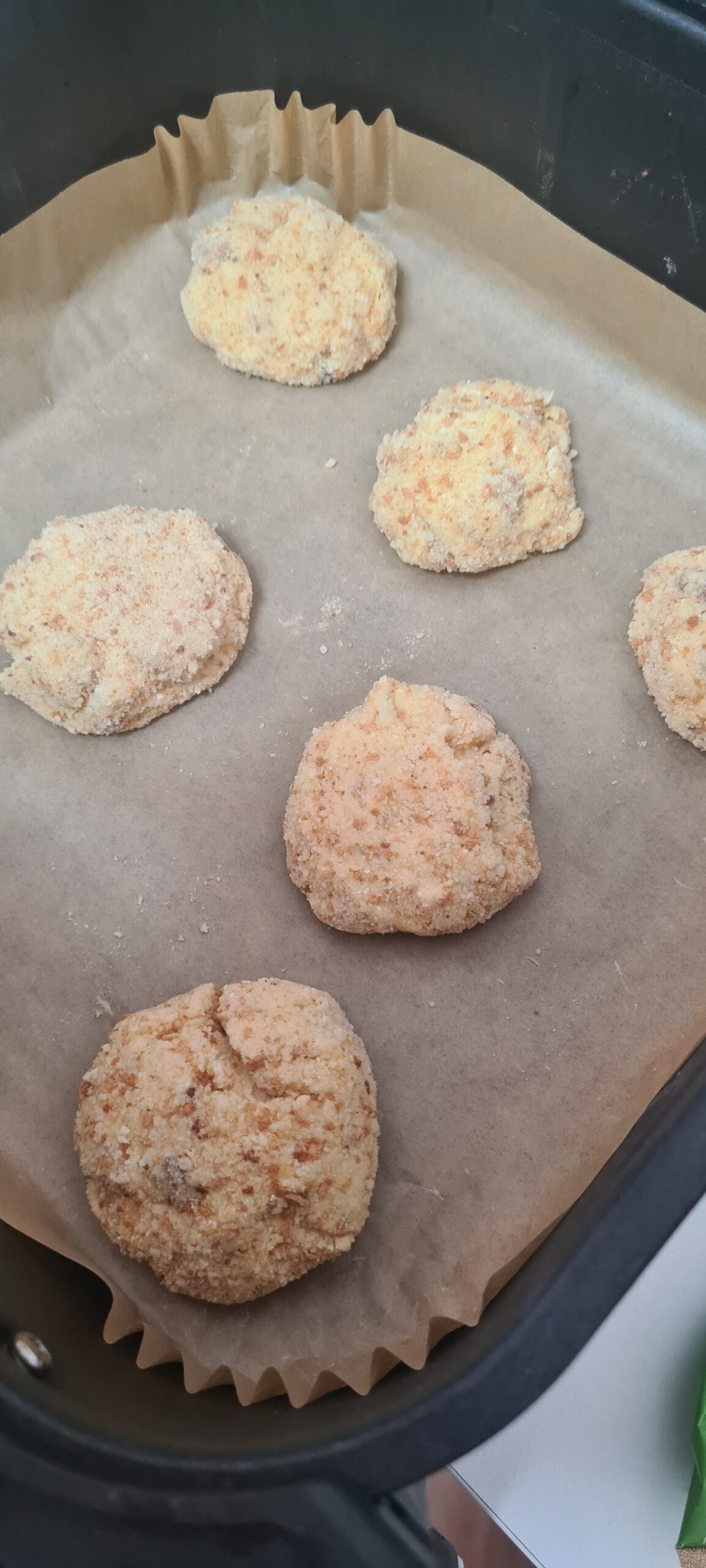 Iniziamo questa ricetta con la Preparazione dell’impasto. In una ciotola capiente unite lo stracchino con le uova. Aggiungete la farina, il parmigiano grattugiato, le noci tritate, un pizzico di sale, pepe e il lievito istantaneo. Mescolate bene fino a ottenere un composto morbido e omogeneo. Aiutandovi con due cucchiai, prelevate piccole quantità di impasto e lasciatele cadere direttamente nel pangrattato. Con le mani, modellate delicatamente delle polpette, senza stringerle troppo (il composto deve rimanere soffice).
