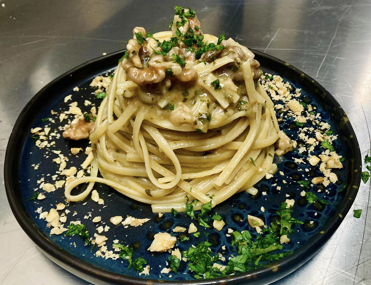 Spaghetti aglio olio alici e noci