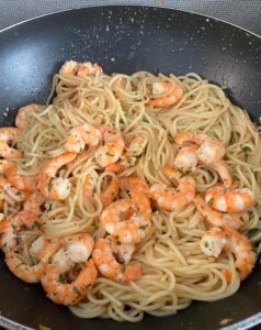 Gli spaghetti aglio, olio e gamberi sono una variante del classico piatto italiano “spaghetti aglio e olio”, una ricetta semplice e popolare. Questo piatto nasce dall’esigenza di arricchire il sapore di un piatto povero, aggiungendo gamberi, che donano una nota marina e rendono il piatto più sostanzioso. È tipico delle regioni costiere italiane, dove il pesce fresco è facilmente reperibile. La combinazione di aglio, olio extravergine d’oliva e peperoncino con i gamberi e aggiunta di acciughe e limoni crea un equilibrio perfetto tra sapidità e freschezza. Vediamo la ricetta dello chef Luigi Santagati passo passo aiutandoci con la galleria fotografica che trovate in basso.