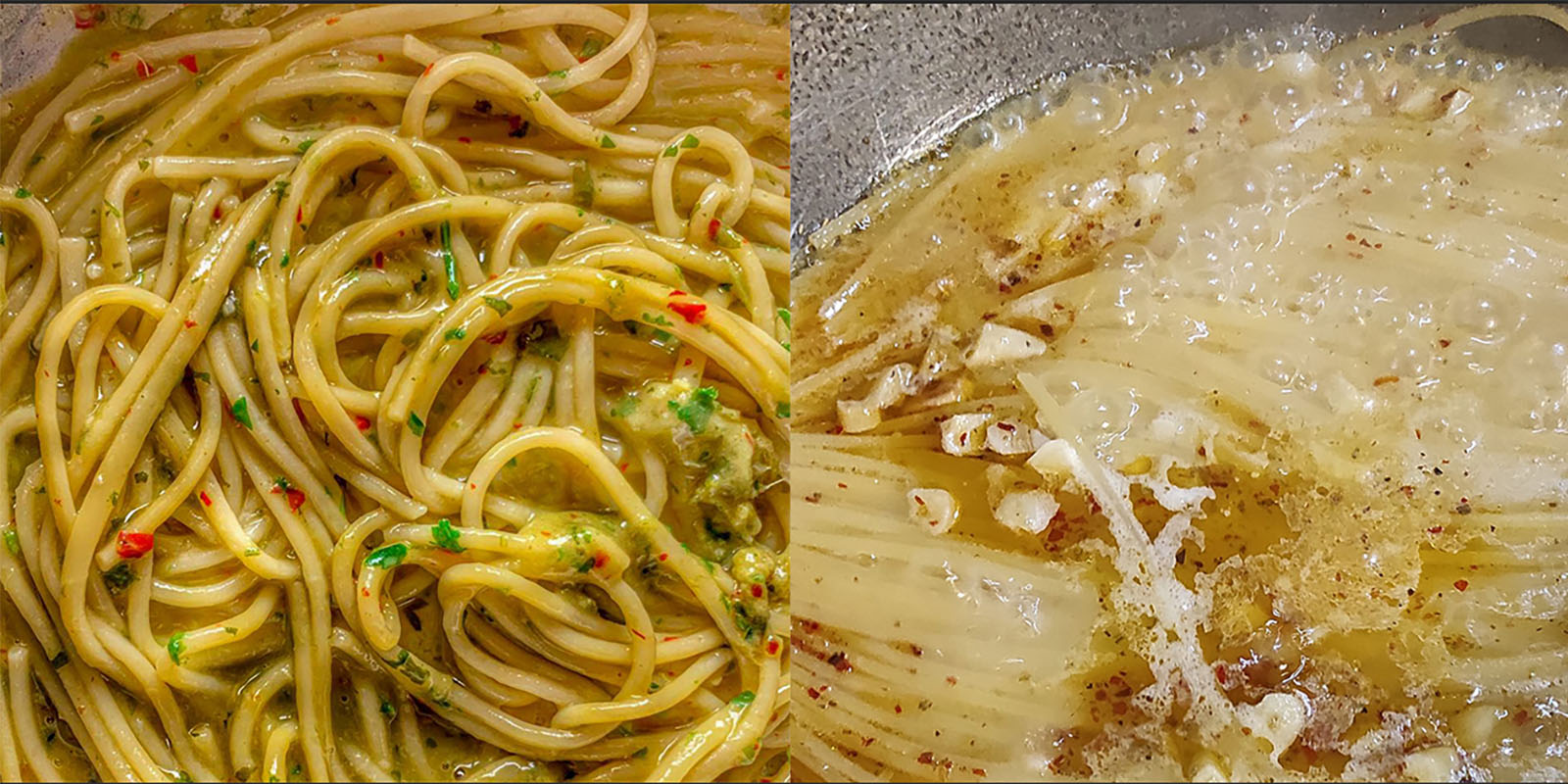 Gli spaghetti aglio olio e peperoncino risottati sono ancora più buoni di quelli classici. Già di per se questa ricetta è diventata famosa in tutto il mondo. E’ semplicissima da preparare, servono pochissimi ingredienti ed è la reginetta delle spaghettate notturne con gli amici. Ma anche la fame chimica vuole la bontà. Così oggi vi consigliamo vivamente di apportare una piccola modifica alla preparazione. Vi consigliamo di risottare la pasta come fanno alla trattoria Nennella di Napoli, e cioè scolarla molto prima del tempo previsto e di continuare la cottura direttamente nell’olio. Con l’amido che rilascerà, vedrete che cremina