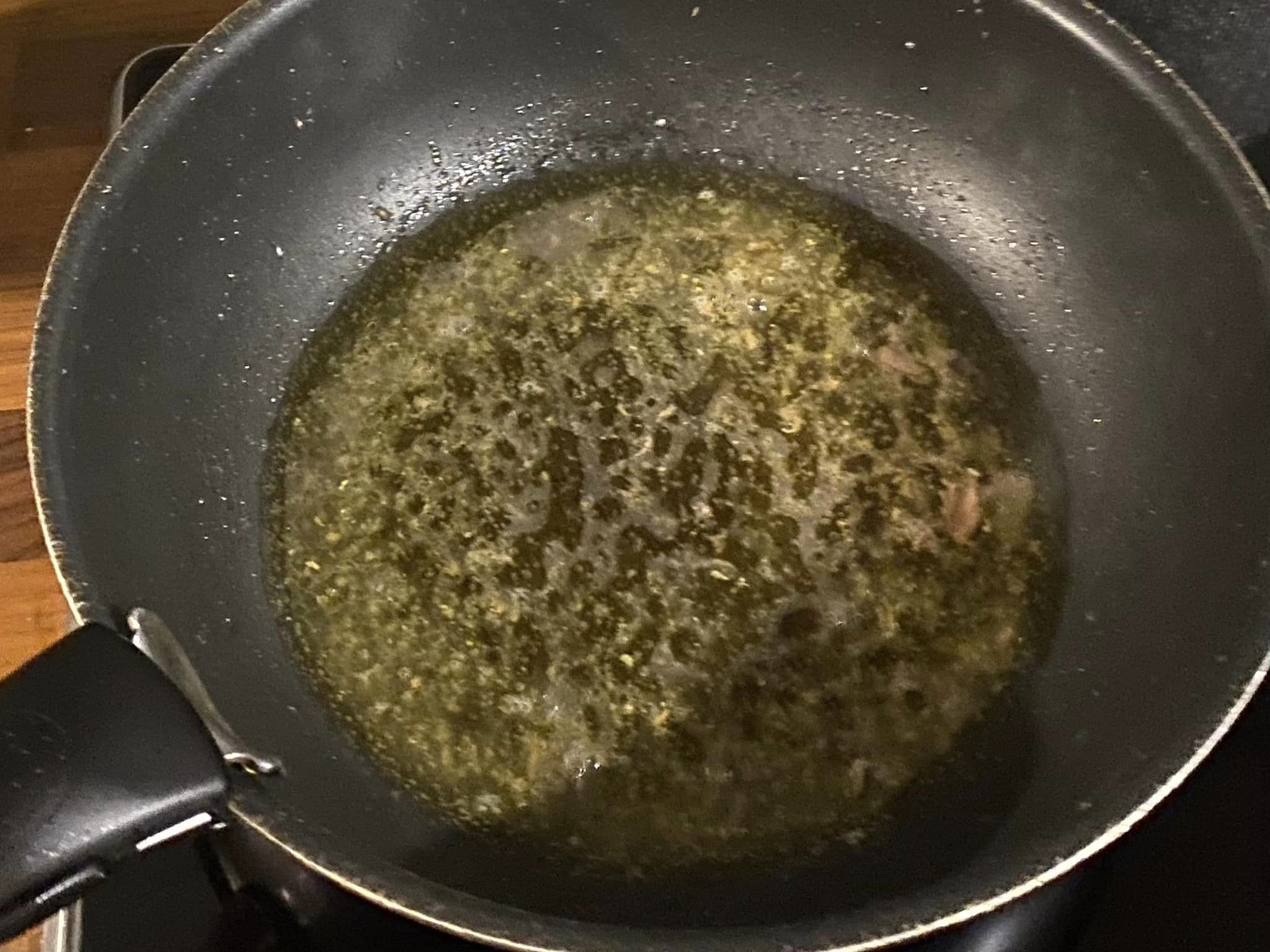 Mettiamo a tostare in una padella calda i pinoli e i semi di finocchio, poi li trasferiamo in un frullatore. Versiamo un filo d’olio nel fondo di cotttura e quando caldo inseriamo le alici. Bagnamoli con uno spruzzo di vino bianco e lasciamo evaporare. Sciogliamo con il cucchiaio di legno le alici e li trasferiamo in frullatore insieme agli altri ingredienti. Aggiungiamo un filetto d’olio, un cucchiaio di prezzemolo tritato, saliamo poco e pepiamo. Intanto abbiamo portato ad ebollizione l’acqua per la pasta. Inseriamo gli spaghetti