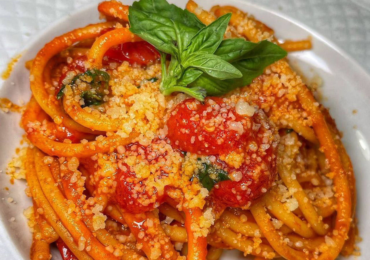 Lasciate cuocere a fiamma dolce per 20 minuti. Scolate gli spaghetti al dente e trasferiteli nella padella con il condimento. Profumate con delle foglie di basilico fresco e fate saltare il tutto. Serviteli ben caldi, se volete potete completare con una bella spolverata di ricotta salata grattugiata. I vostri spaghetti al pomodoro sono pronti. Come vedete, anche Antonino Cannavacciuolo li prepara in maniera semplice e tradizionale. Buon appetito.