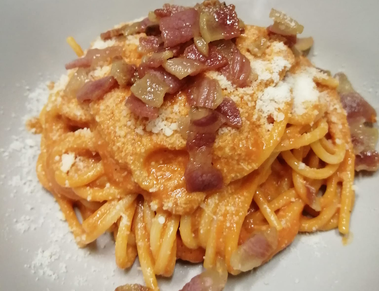 Spaghetti alla botticella, la pasta degli indecisi. Se amate la carbonara e l’amatriciana questa pasta è la scelta giusta. Tutte le volte che non sapete scegliere tra le due, scegliete gli spaghetti alla botticella. Una vera delizia per il palato. Questo primo combina i sapori ricchi del guanciale e del pecorino con la dolcezza dei pomodori, creando un piatto equilibrato e gustoso.