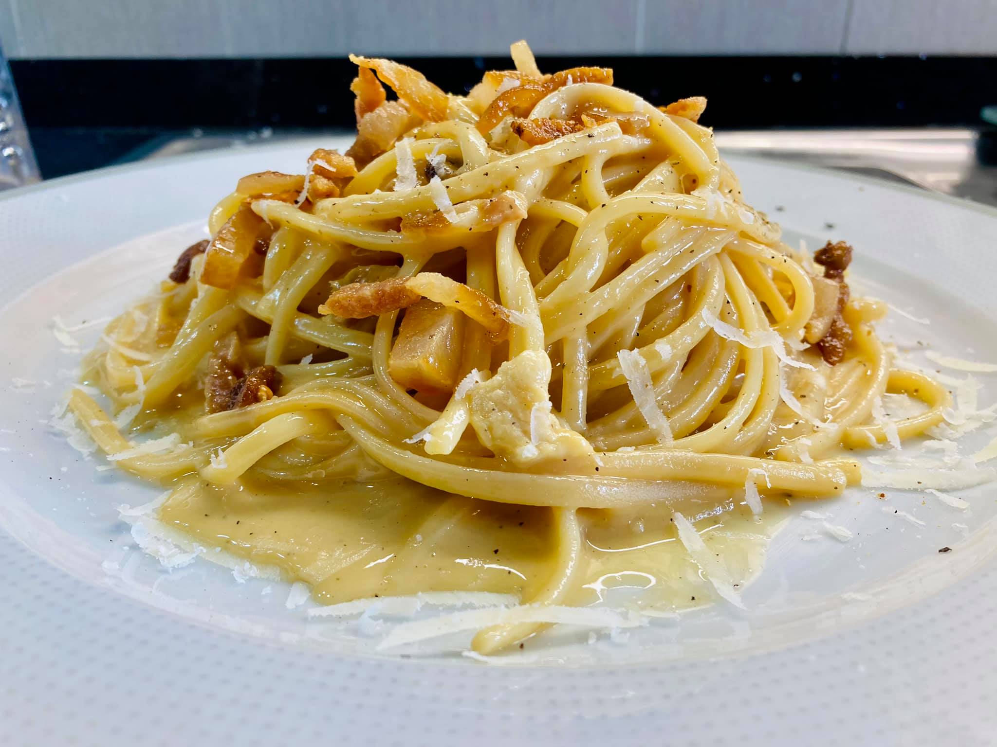 Gli spaghetti alla carbonara finta sono un piatto differente dal solito. Lo dice stesso il nome: del primo romano hanno solamente l’apparenza. Ma come è possibile realizzare una consistenza così simile a quella dell’uovo e dello stesso colore? Ebbene, è stata utilizzata una crema di peperoni gialli, con la stessa capacità di avvolgere gli spaghetti e donarci un boccone da urlo ad ogni morso. Al posto del guanciale, immancabile nella carbonara, è stata invece utilizzata la mortadella tagliata a cubetti. Presentate questo piatto in tavola: nessuno noterà la differenza, ma al primo assaggio tutti si complimenteranno con voi.