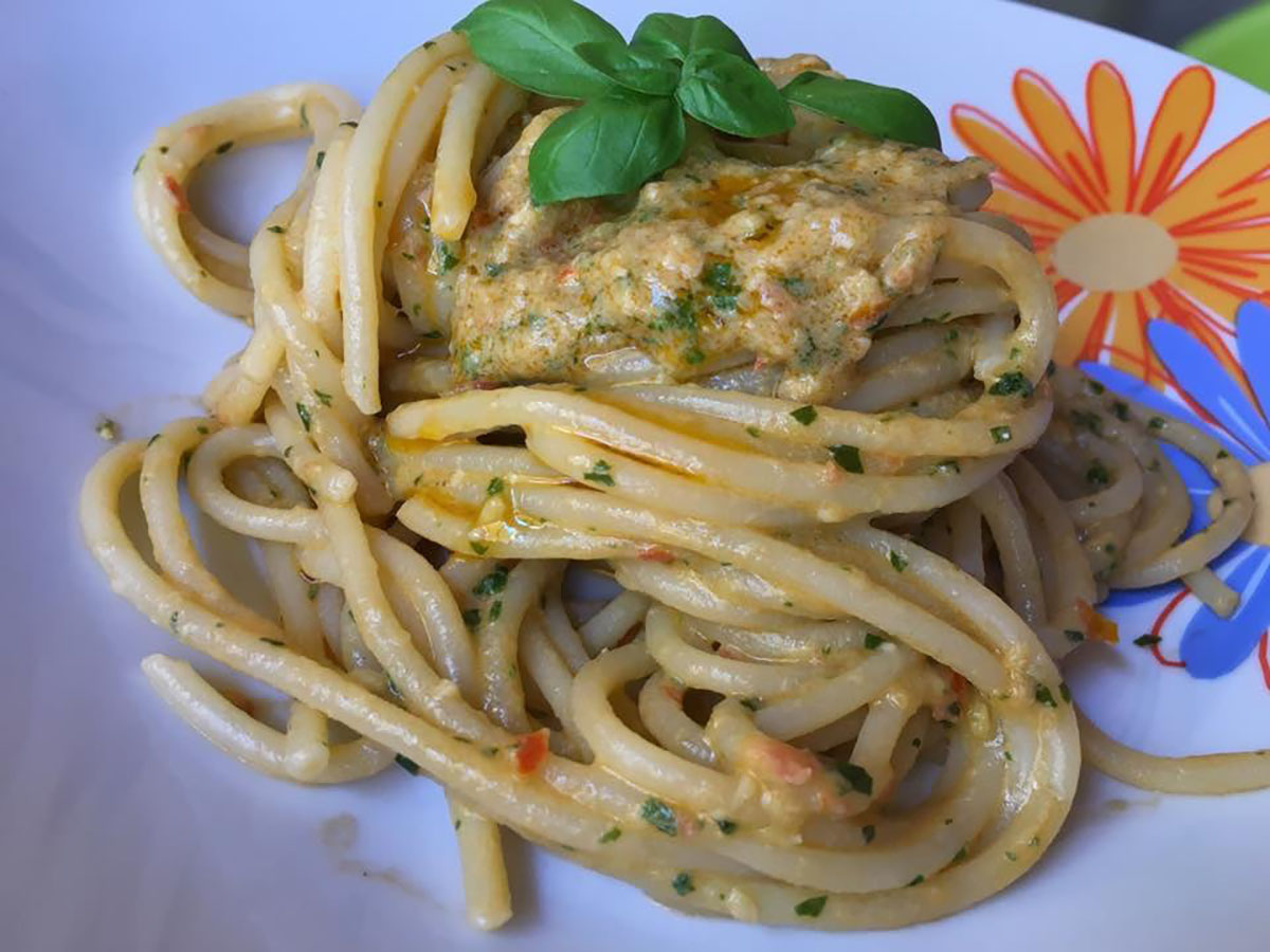 La pasta alla Carlofortina è una prelibatezza tipica di Carloforte, un borgo della Sardegna sud-occidentale, sull’isola di San Pietro. Questo primo, ricco di sapore e tradizione, è ideale per un pranzo domenicale in famiglia o una cena tra amici a base di pesce. La ricetta è influenzata dalla cucina ligure, poiché nel 1738 gli abitanti di Pegli, un quartiere di Genova, si stabilirono in questa zona dopo essere emigrati dalla città tunisina di Tabarka. Ed infatti, tra gli ingredienti ritroviamo il pesto di basilico che, assieme al tonno e alle trofie crea una sinfonia di gusti irresistibile. Si tratta, dunque, di una ricetta perfetta per chi cerca un piatto di mare con un tocco di tradizione e storia.