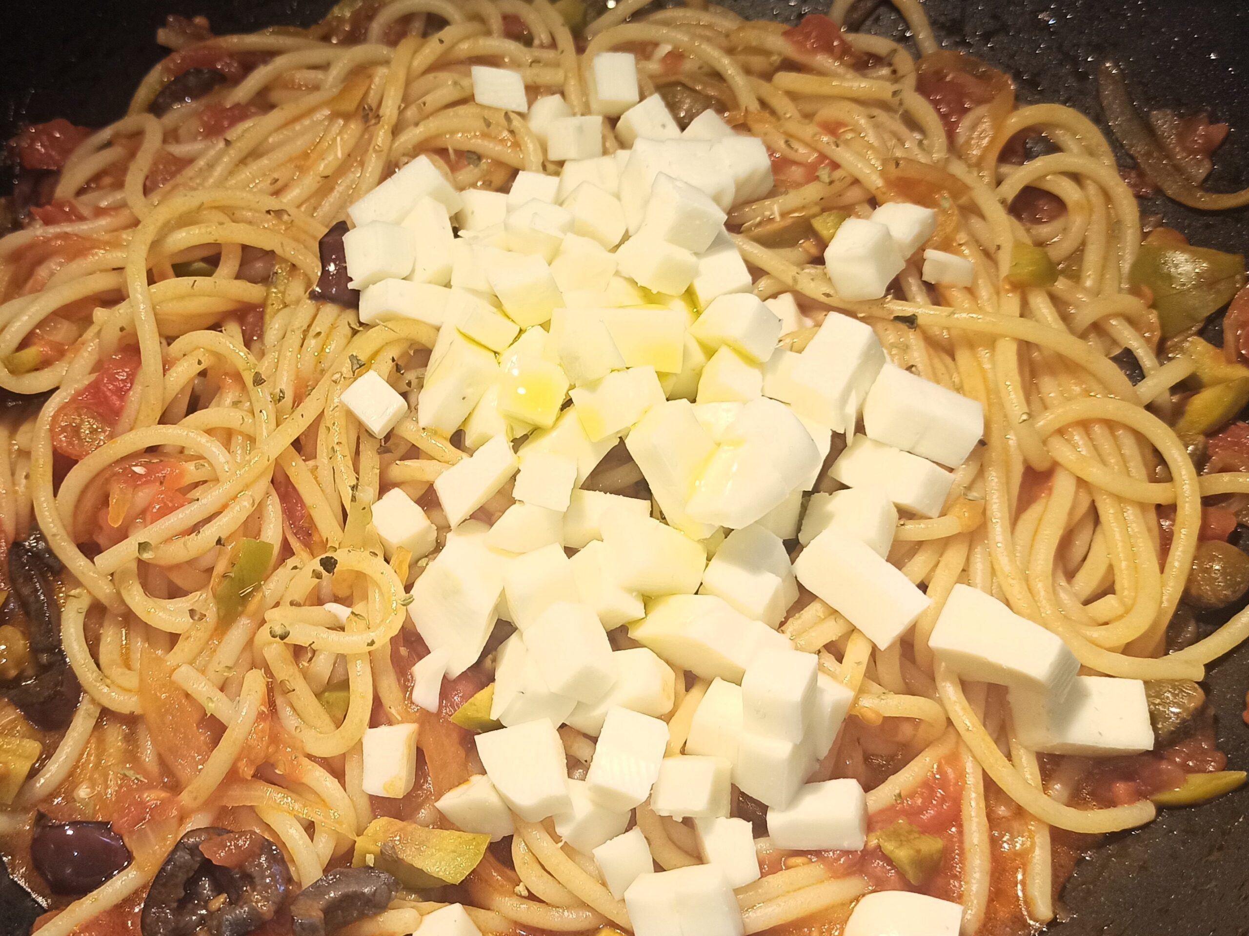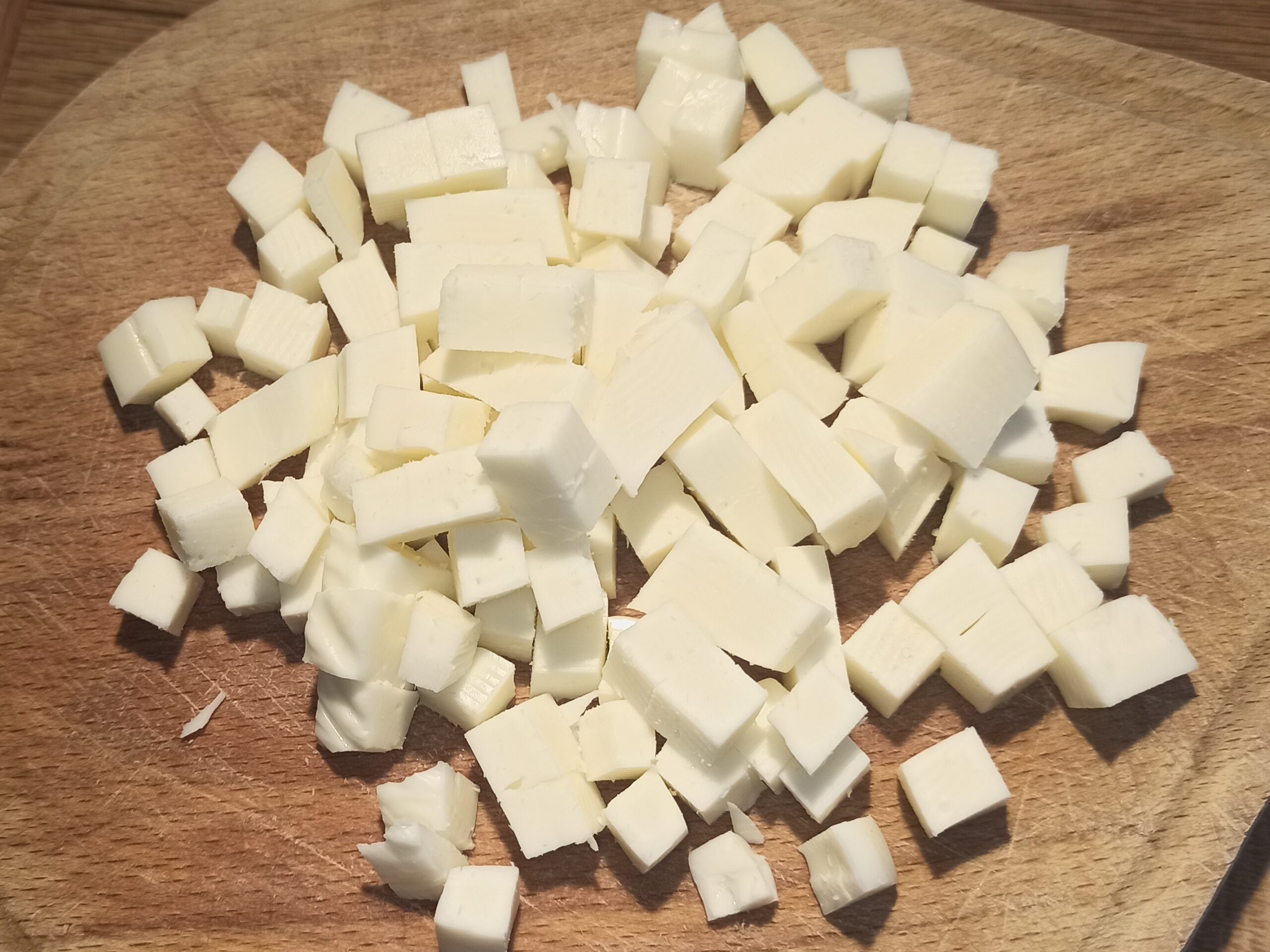 Mentre la pasta cuoce, tagliate il fiordilatte a tocchetti piccoli.