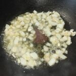 Per preparare la pasta alla puttanesca con il baccalà, iniziate a sciacquare il baccalà, eliminate la pelle e le lische, tagliatelo a cubetti. In una capiente padella, mettete un paio di giri abbondanti di olio evo, fate soffriggere lo spicchio d’aglio ed eliminatelo. Aggiungete il baccalà, fate sfrigolare per un paio di minuti, poi sfumate con il vino bianco.