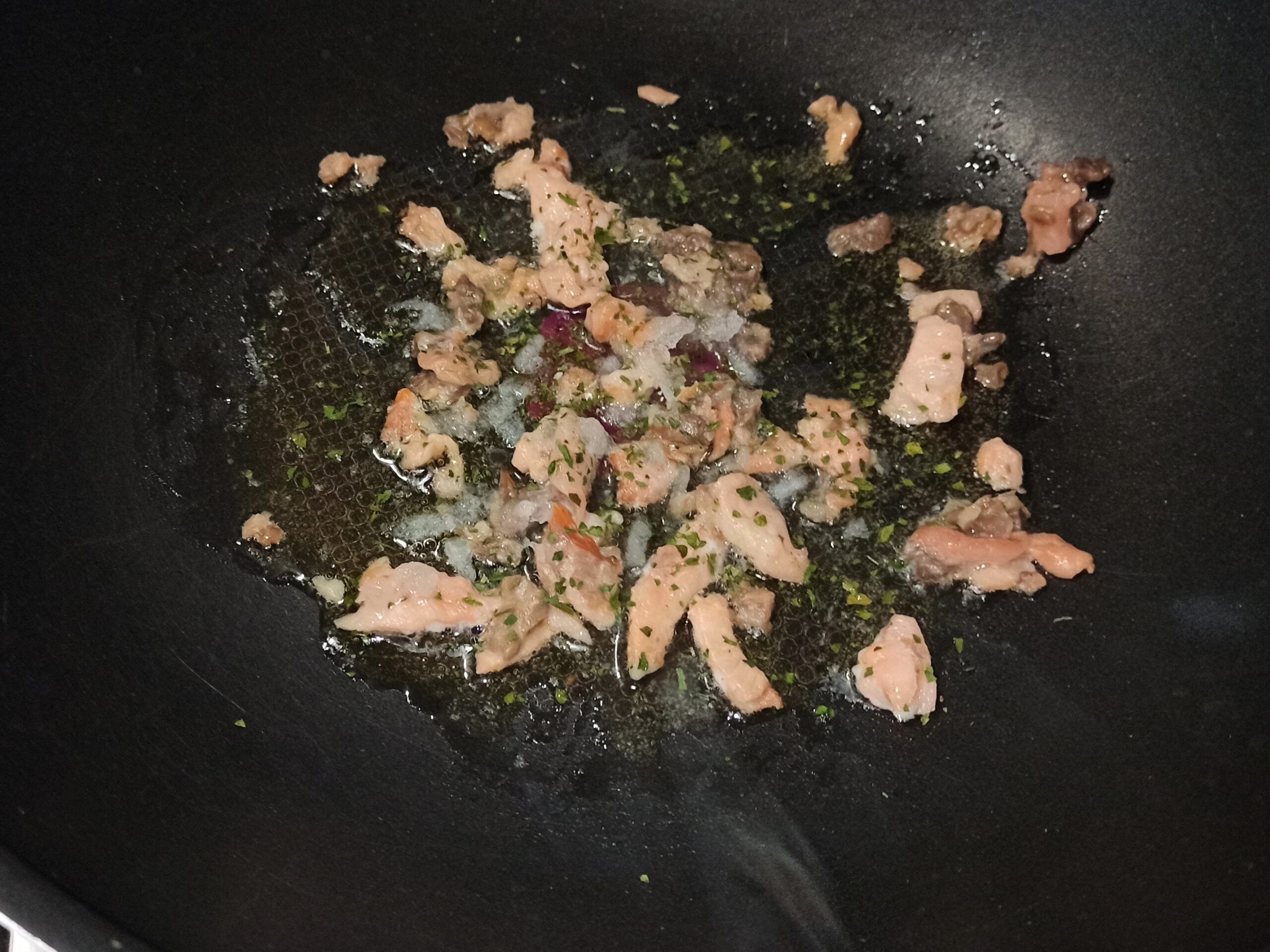 aggiungete un poco di prezzemolo, mescolate, impiattate, completate con del pepe macinato al momento.