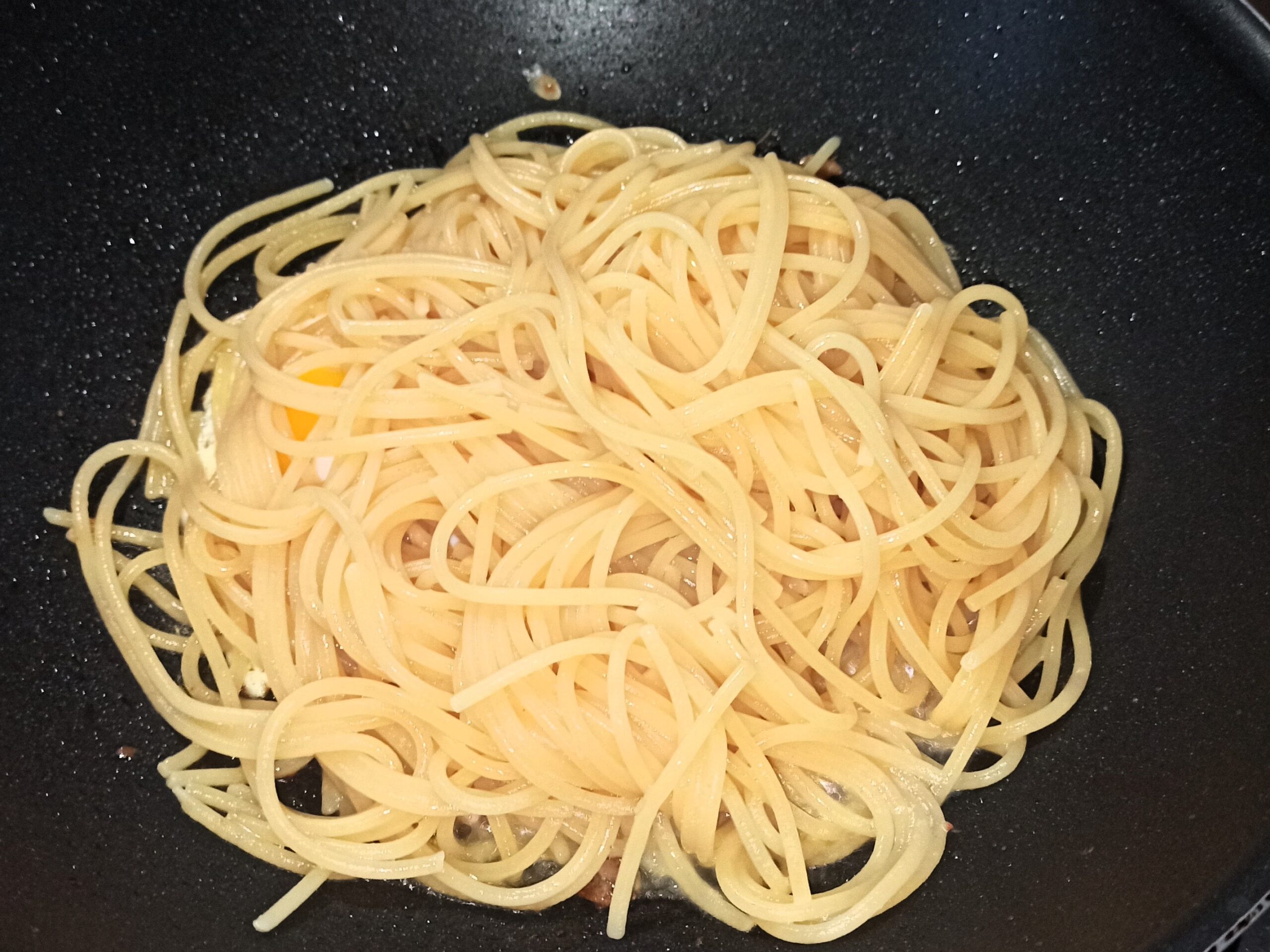 Colate gli spaghetti direttamente nella padella,