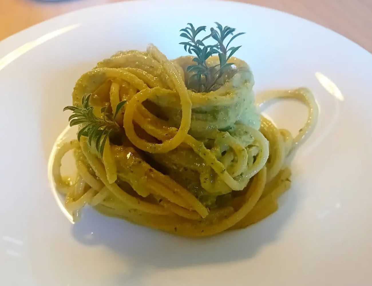 Pennette con pesto di santoreggia e fagiolini