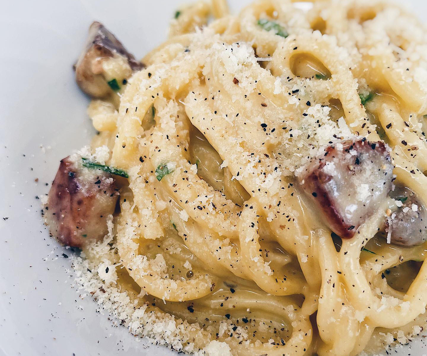 Spaghettoni cacio e pepe con tonno e pistacchio