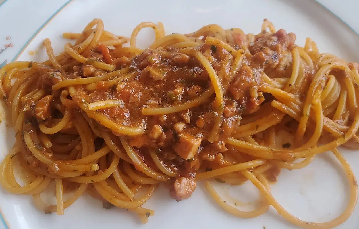 Spaghetti con il tonno alla Sessana, ottimi e veloci. Non in tutte le case campane si mangia pesce fresco. Anzi. In molte province, magari lontane dal mare, si tendeva consumare piatti si di pesce, ma non pescato lo stesso giorno. E’ il caso degli spaghetti con il tonno. Un piatto antico, che al paese di papà, San Castrese, una frazione di Sessa Aurunca, Caserta, si consumava questo piatto il giorno della Vigilia di Natale.