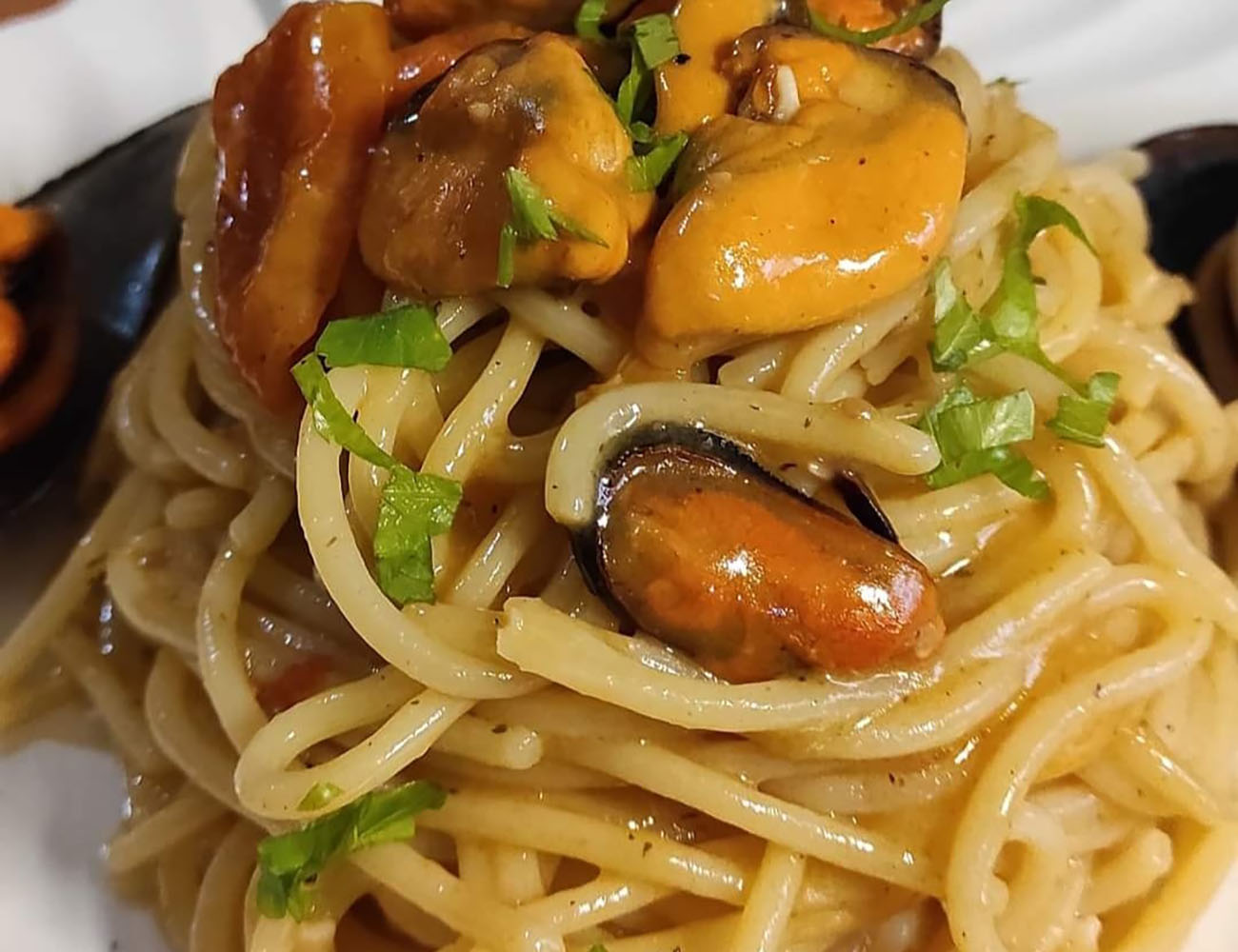 Da questo momento potete cominciare a risottarli. E’ fondamentale che mescoliate o saltiate sempre, finché non raggiungono la cottura al dente. Solo in questo modo si formerà una cremina. Infine, aggiungete le cozze sgusciate e un’altra manciata di prezzemolo. Saltate ancora per amalgamare gli ingredienti e servite. I vostri spaghetti con le cozze sono pronti.