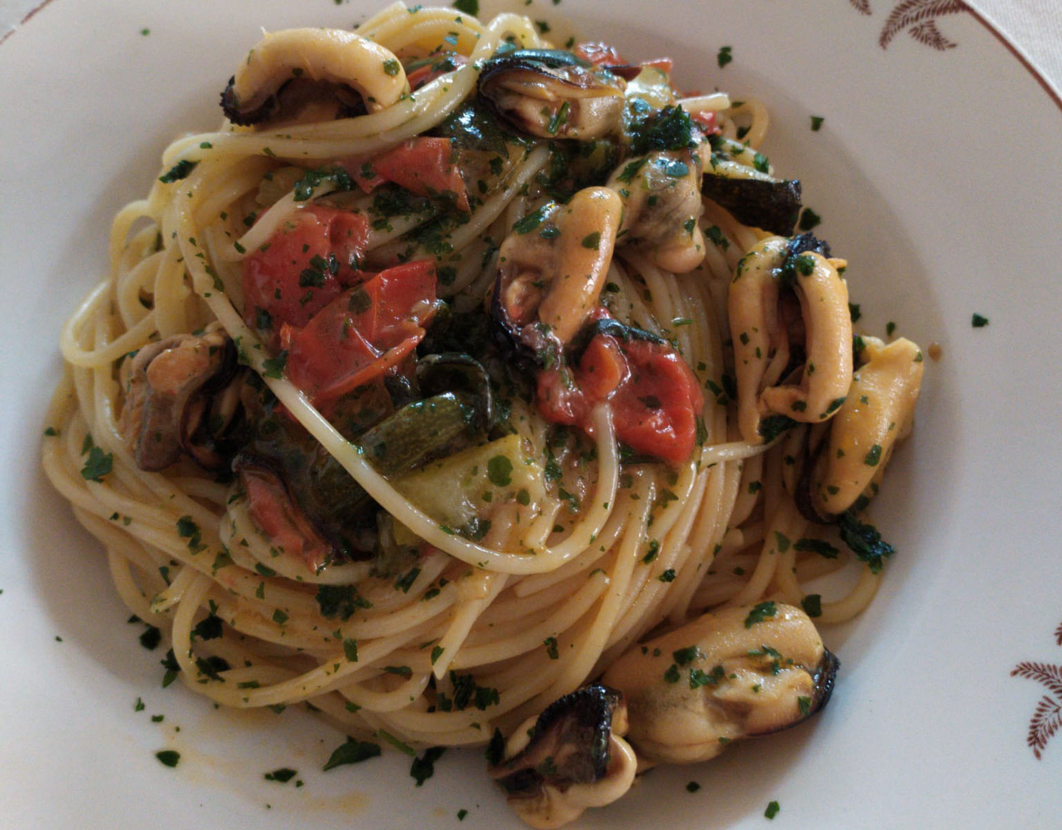 Mantecate le linguine a fiamma viva, girando continuamente. Girate ed amalgamate il tutto a fiamma viva, fino a quando l’acqua di cottura non si sarà asciugata e l’amido della pasta avrà creato una cremina densa. In questo modo, il condimento sarà perfettamente legato con la pasta, che avrà completato la sua cottura direttamente nell’acqua delle cozze, assorbendo così tutti i profumi del mare e risultando lucida e cremosa.
