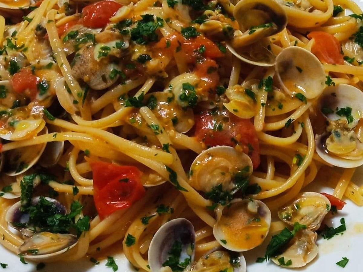 Gli spaghetti vongole e pomodorini sono un primo saporito e fragrante, una versione più ricca e colorata dei classici spaghetti alle vongole, piatto tipico della cucina italiana e in particolare campana. Facili e veloci da preparare, sono perfetti per una cena estiva tra amici, organizzata all’ultimo minuto, o per un pranzo in famiglia di ritorno dal mare. Il segreto sta nello scegliere dei pomodorini freschi e molto dolci, come i datterini o i ciliegini, e, per un tocco più aromatico, sfumare le vongole con un bicchiere di vino bianco. Assicuratevi inoltre che le vongole siano freschissime.