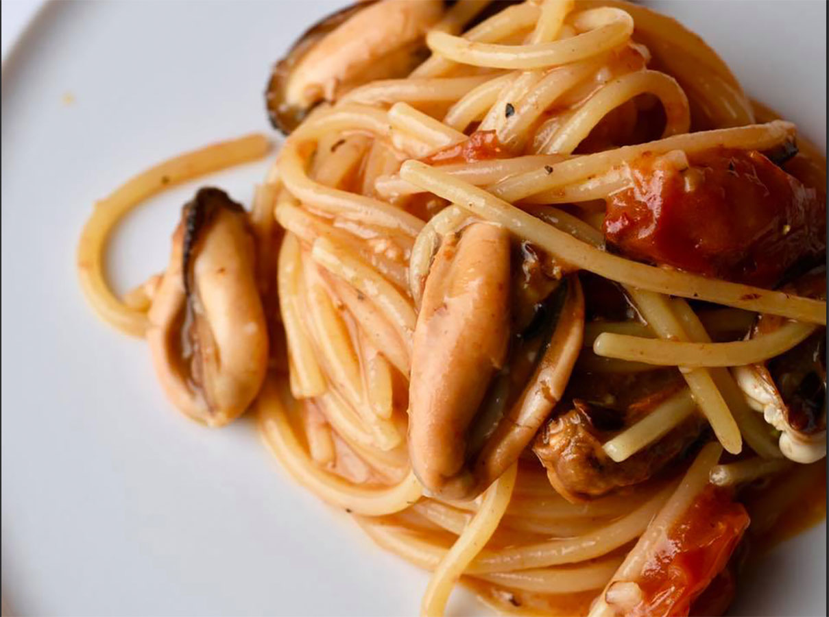 Spaghetti con pomodorini arrostiti, cozze, olive, pecorino e pepe. Un piatto mediterraneo dal carattere deciso, perfetto per chi ama osare con gusto. Ci sono piatti che sembrano una sinfonia: ogni ingrediente entra in scena al momento giusto, con il suo sapore, il suo profumo, la sua consistenza. Gli spaghetti con pomodorini arrostiti, cozze, olive nere, pecorino e pepe sono un viaggio nei sapori forti e autentici del Mediterraneo. È un piatto che racconta la cucina del Sud, ma con un tocco creativo e sorprendente. Semplice da realizzare, ma capace di lasciare il segno: perfetto per una cena tra amici o per coccolarsi in un pranzo speciale.