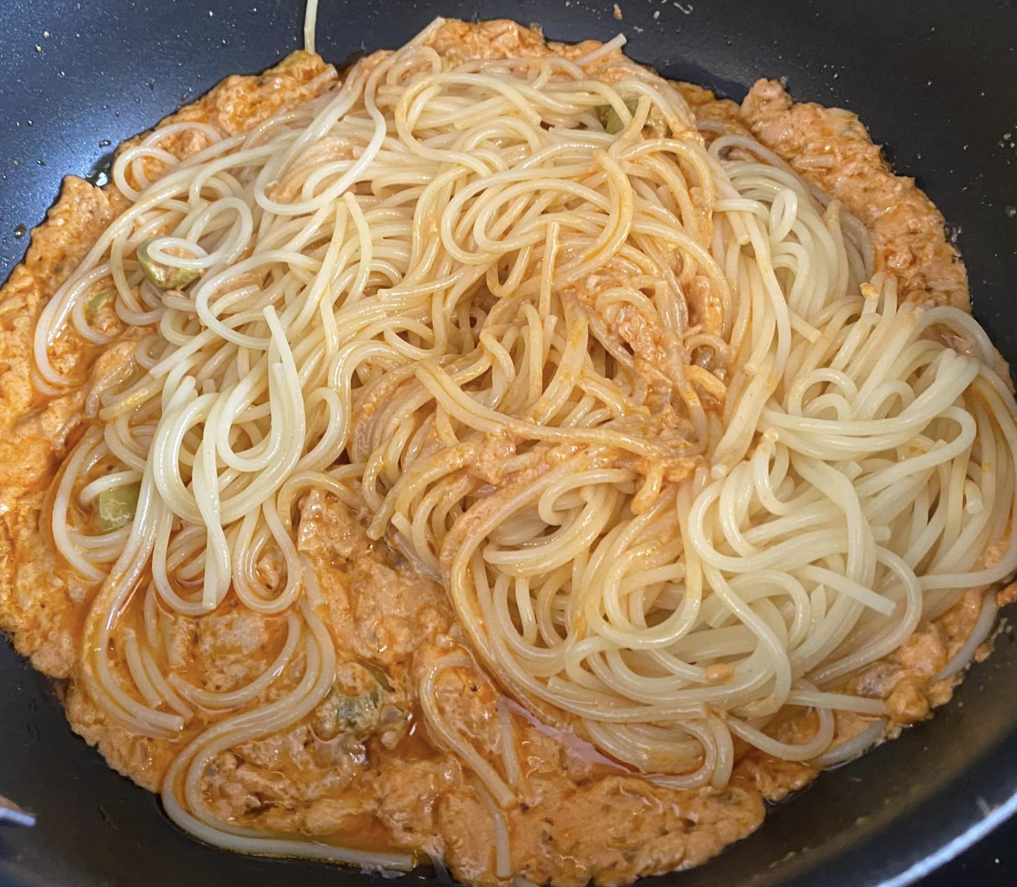 Spaghetti con tonno alla crema