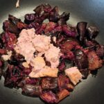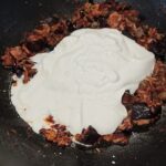 mescolate e aggiungete la panna e mescolate ancora, fate cuocere a fiamma bassa per cinque minuti.