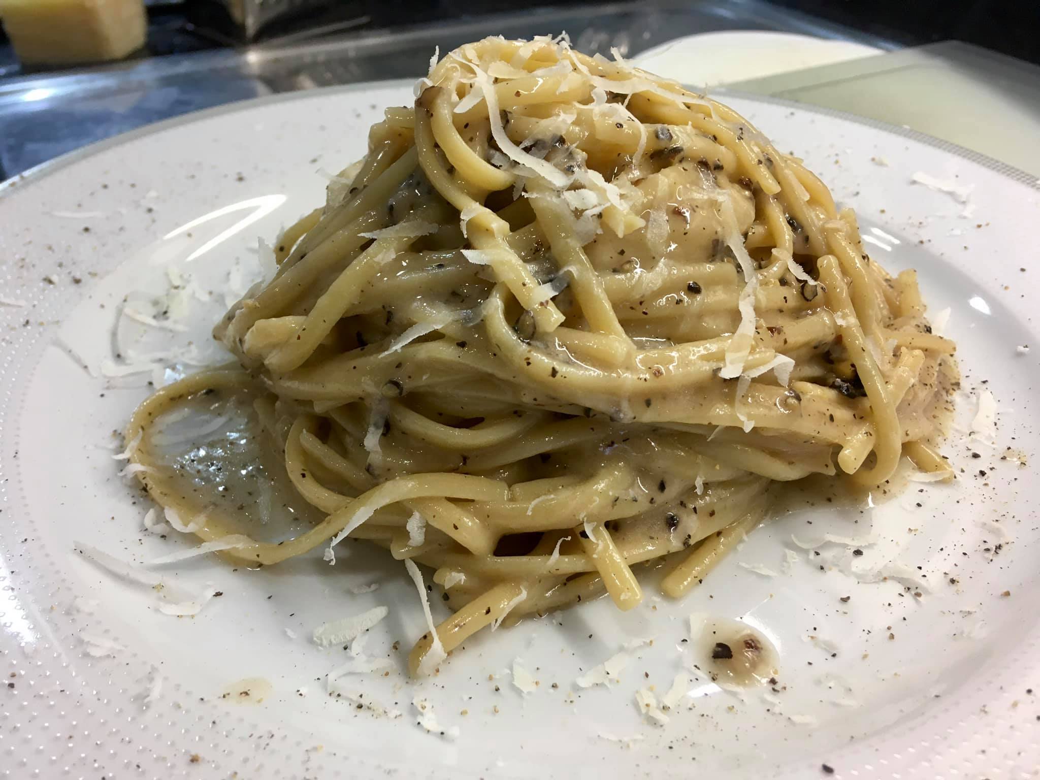 Versate tre cucchiai di acqua di cottura e mischiate bene tutti gli ingredienti. Scolate gli spaghettoni bene al dente e trasferiteli direttamente nella padella con il condimento. Fate saltare il tutto insieme per qualche minuto. Impiattate e completate con un’altra spolverata di pepe. La vostra pasta dei becchi è pronta. Vi auguriamo di non cucinarla per le stesse motivazioni del passato, ma soltanto perché non avete voglia di trascorrere molto tempo in cucina.