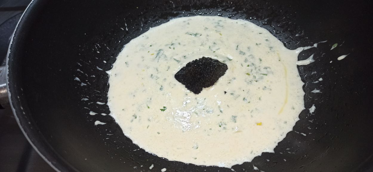Amalgamate, e fate insaporire per qualche minuto, poi spegnente la fiamma e aggiungete un cucchiaino abbondante di uova di lompo.