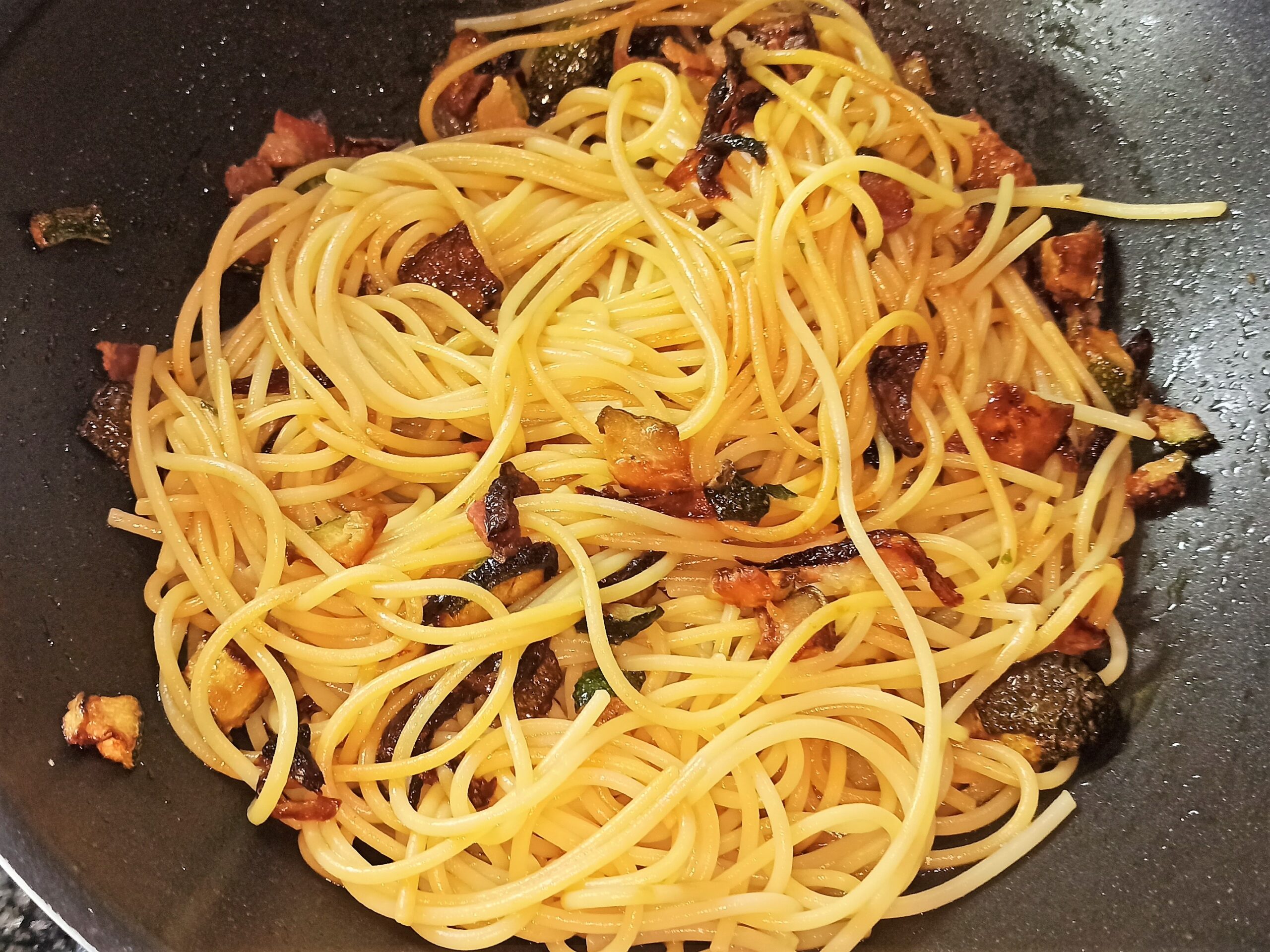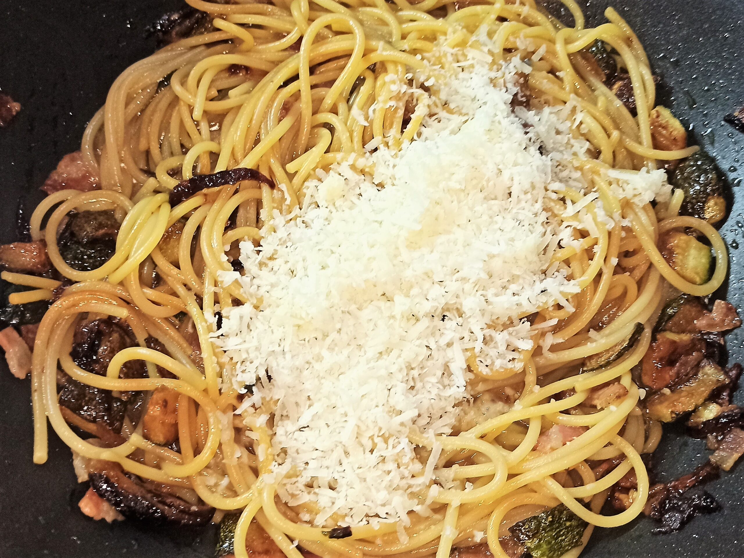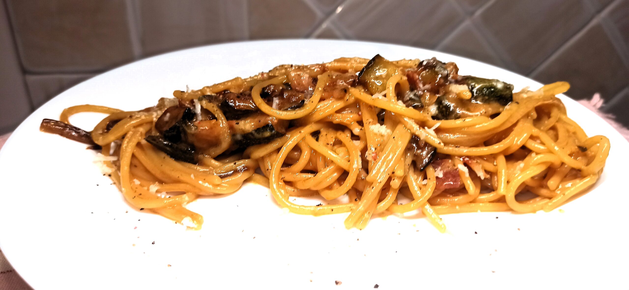 Gli spaghetti dello zio Alfio, sono una rivisitazione dei più comuni spaghetti alla Nerano. In questa preparazione alle zucchine viene aggiunto un soffritto di pancetta e cipolle, il tutto amalgamato con un mix di formaggi, io ho usato del pecorino e parmigiano reggiano. Potete aggiungere qualche fogliolina di menta, per donare più freschezza al piatto.
