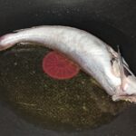 Pulite il merluzzetto, e lavatelo con abbondante acqua corrente, in una capiente padella mettete un giro d’olio evo, lo spicchio d’aglio e fate imbiondire leggermente. Eliminate l’aglio e unite il merluzzetto, fatelo cuocere a fiamma media, circa due minuti per lato, mettetelo in un piatto a raffreddare.