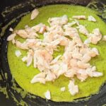 appena il merluzzetto si sarà raffreddato, procedete ad eliminare la pelle e le lische, unitelo alla crema di zucchine, conservandone qualche pezzetto per guarnire il piatto.