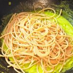 Portate ad ebollizione l’acqua dove avete cotto le zucchine, salatela e cuocete la pasta, colatela al dente direttamente nella padella,